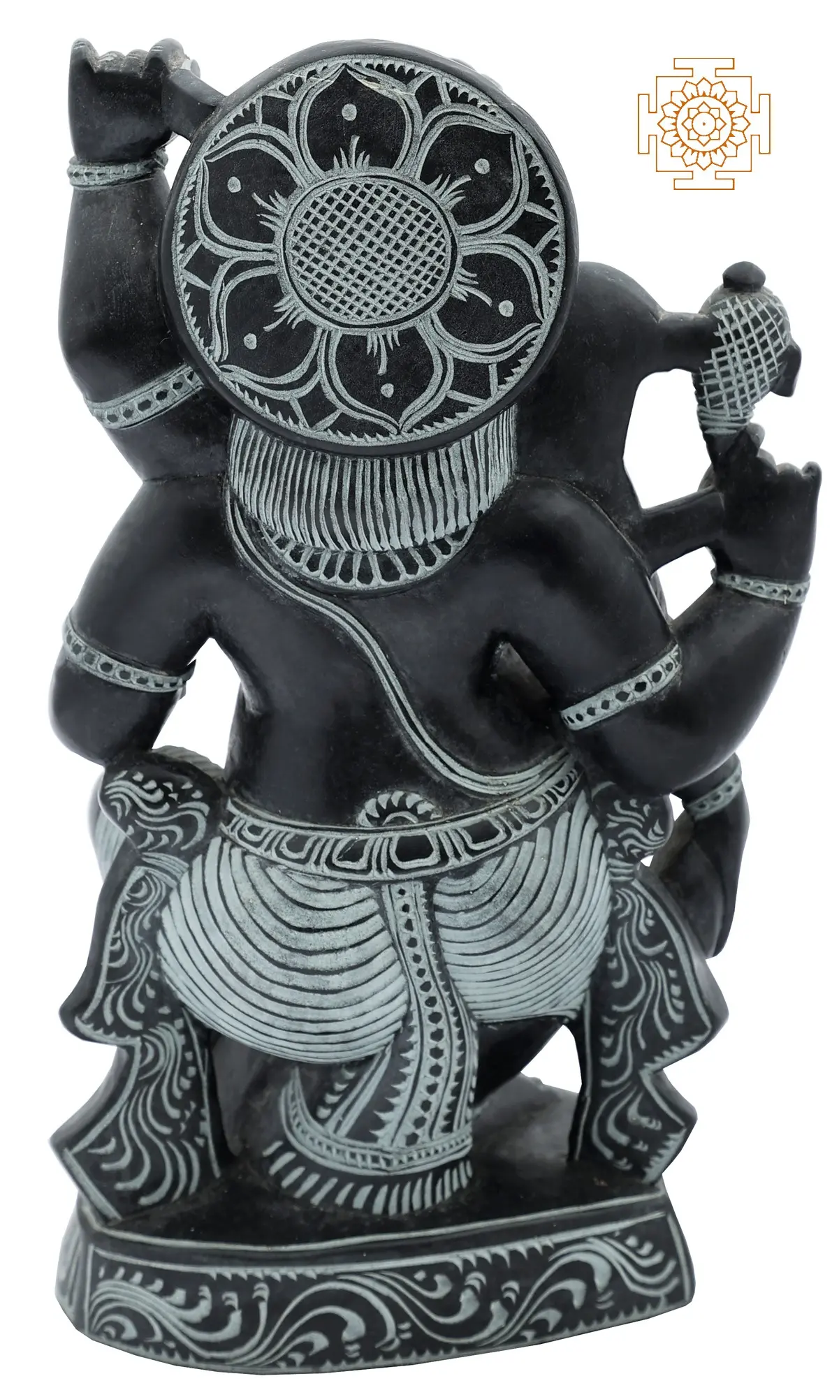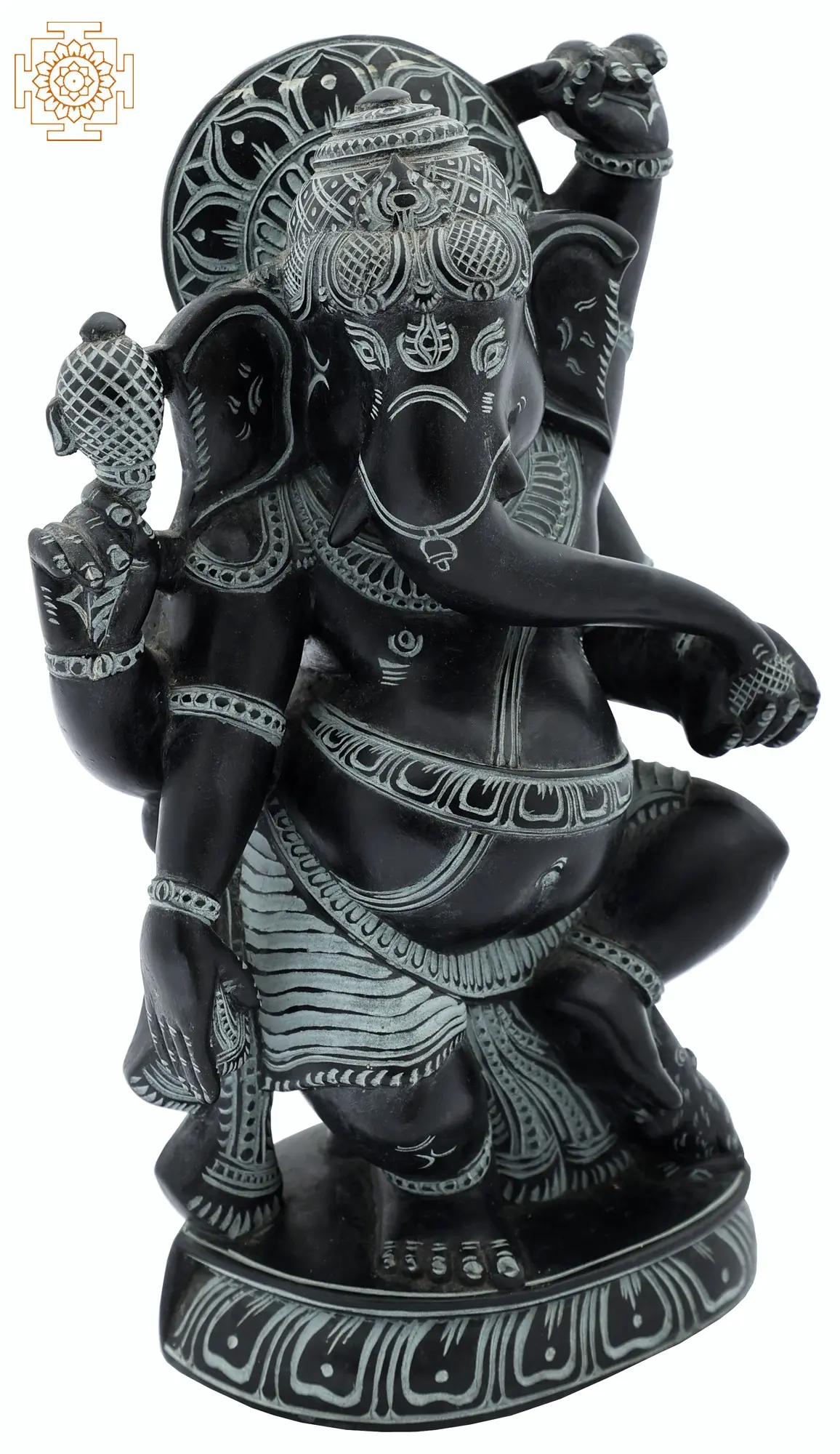 Ganesha is one who is deemed to help manifest limitless triumphs and progress to his devotees. He is usually depicted in a seated or standing position, but in this statue, he can be seen dancing, symbolizing his exuberant side. The anecdote says that Shiva’s unawareness about the identity of Ganesha made the usually well-disposed Shiva bring wrath upon himself that resulted in severing Ganesha’s head with his Trishul. Upon realizing, Shiva decided to bring the quietus Ganesha back to life with the head of the creature his Shiva-dutas’ first lay eyes on, which happened to be an elephant. Ganesha, son of Shiva and Parvati, is since is worshipped as the "Lord of the Gaṇas".