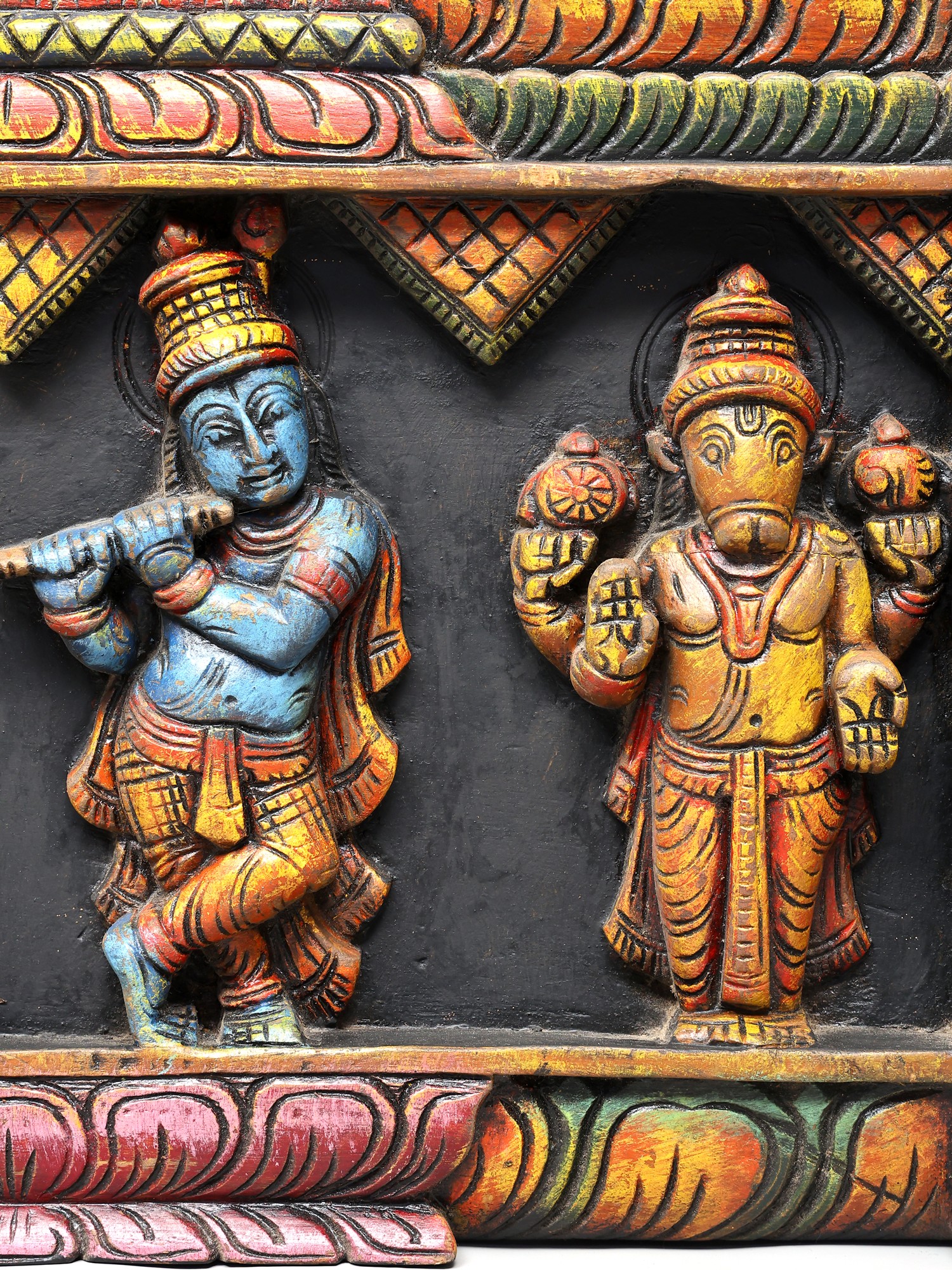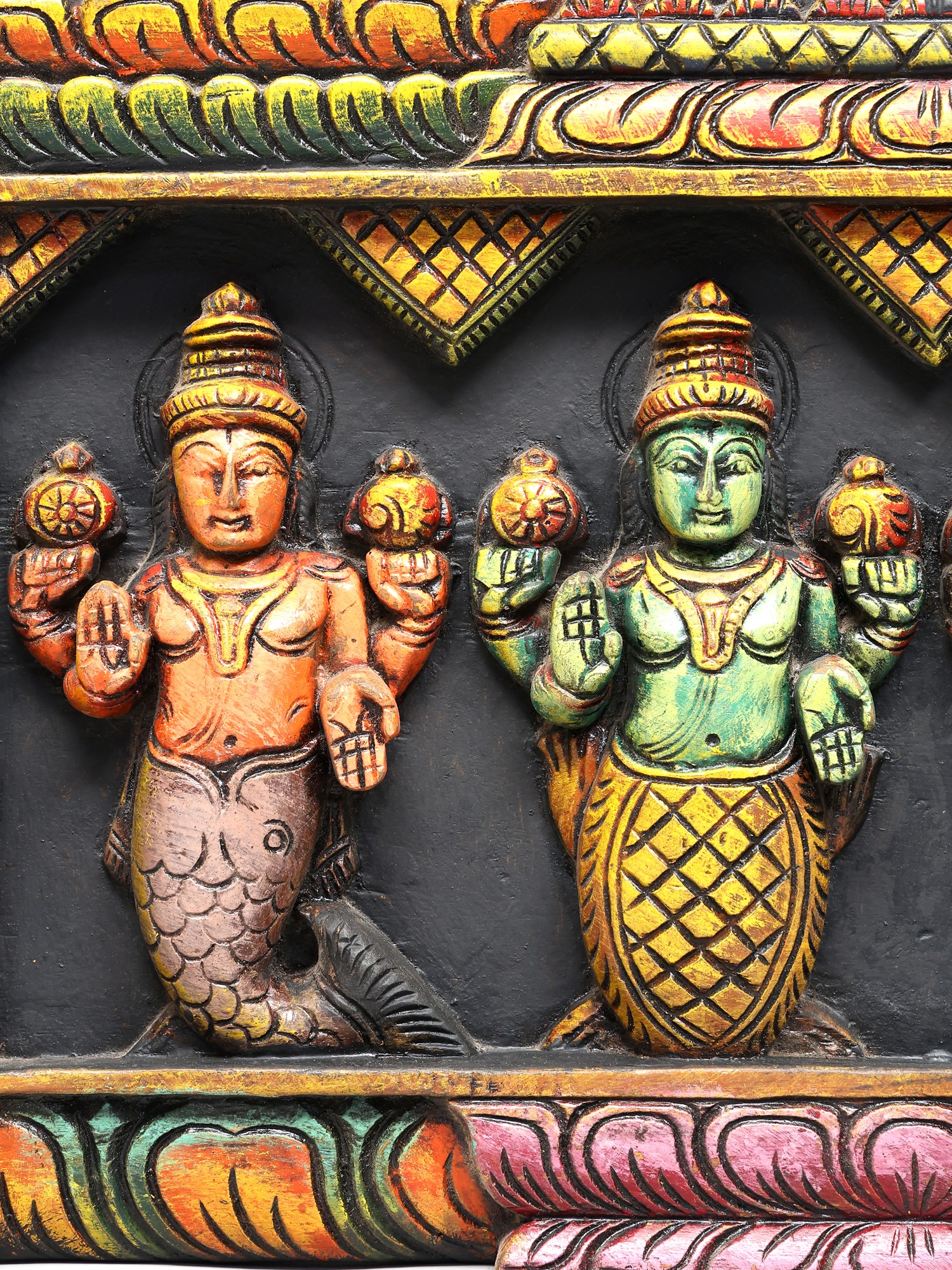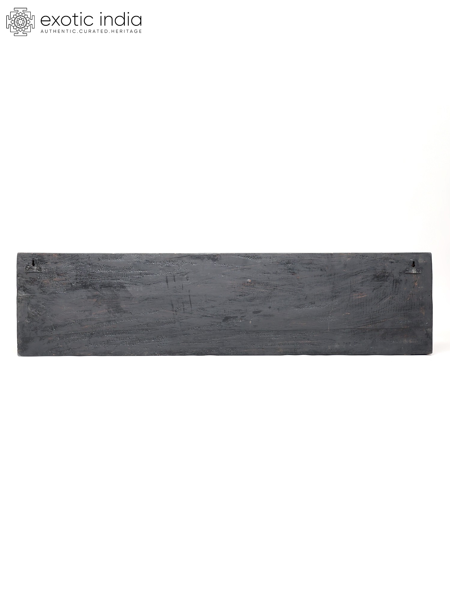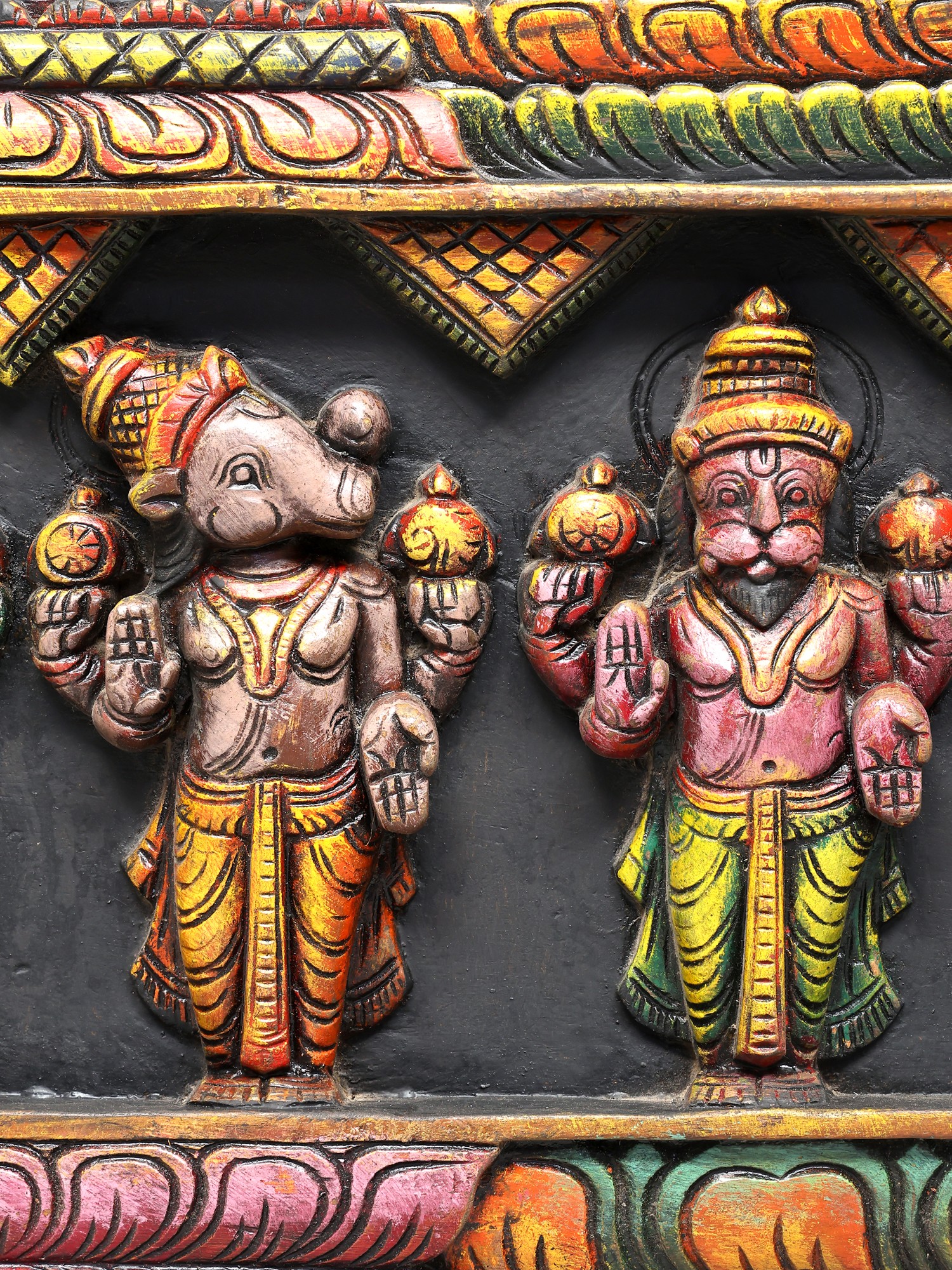 Measuring 11.5 x 48.5 x 2.0 inches, this wood carving makes a powerful statement in any space. Its substantial size commands attention, while its intricate details invite closer inspection. It is suitable for display in living rooms, meditation spaces, or devotional areas, serving as a focal point that radiates positivity and spiritual energy. Whether you are a collector of South Indian art, a devotee of Lord Vishnu, or simply appreciate the beauty of handcrafted objects, this panel offers a unique and meaningful addition to your home.