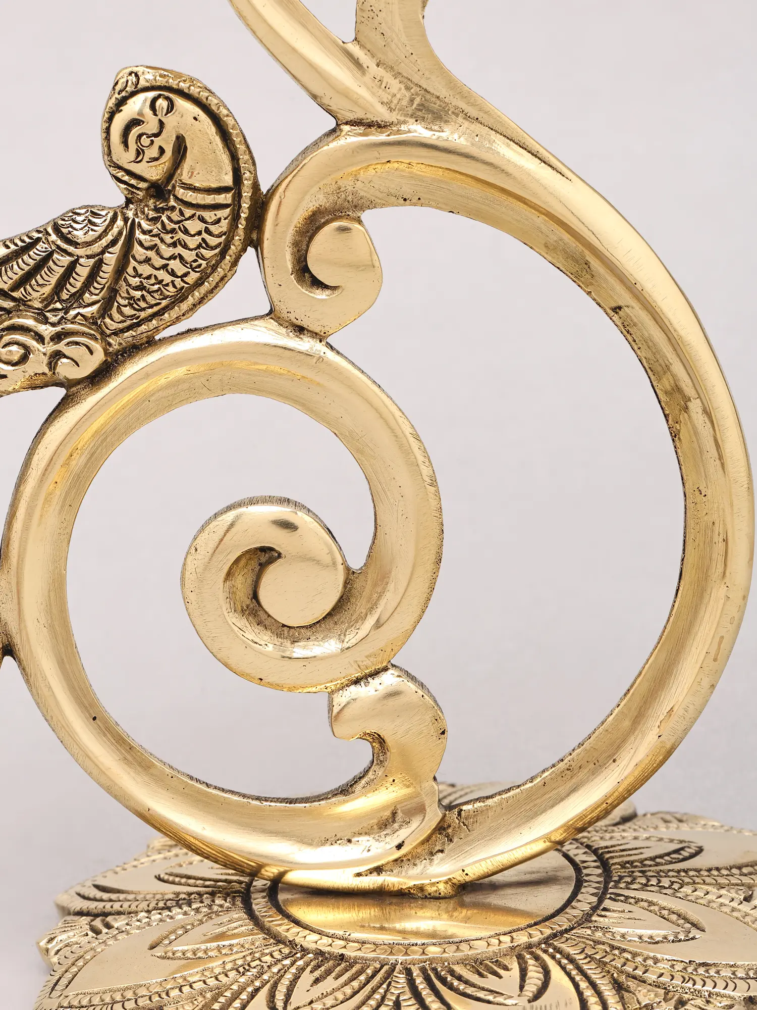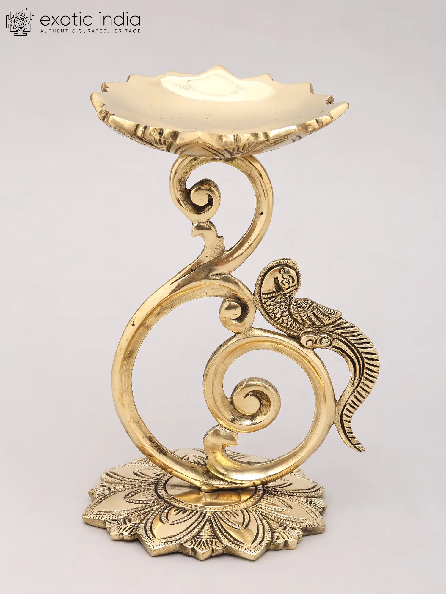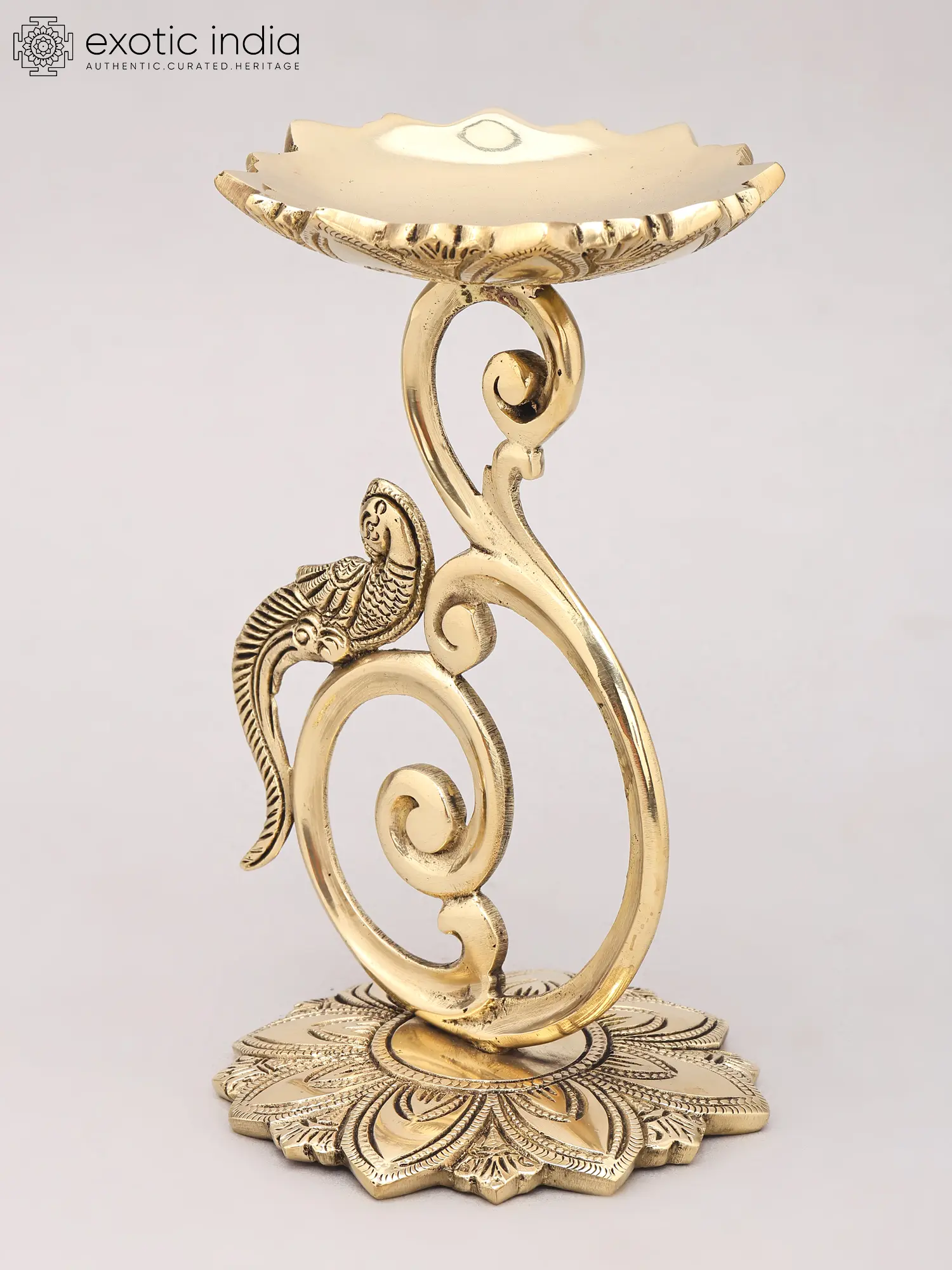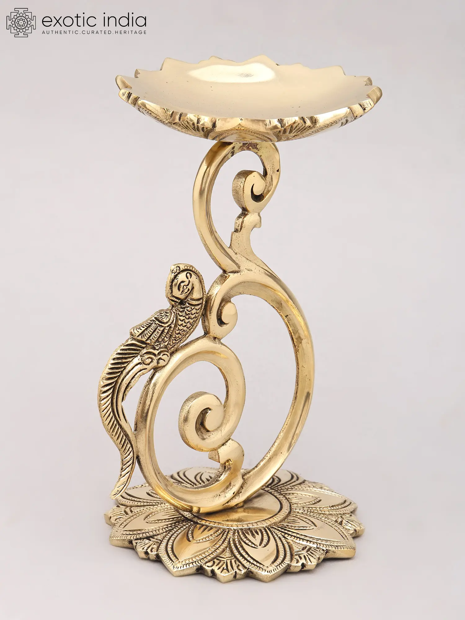 Designer Brass Lamp Stand with Parrot Motif - 8 Inches