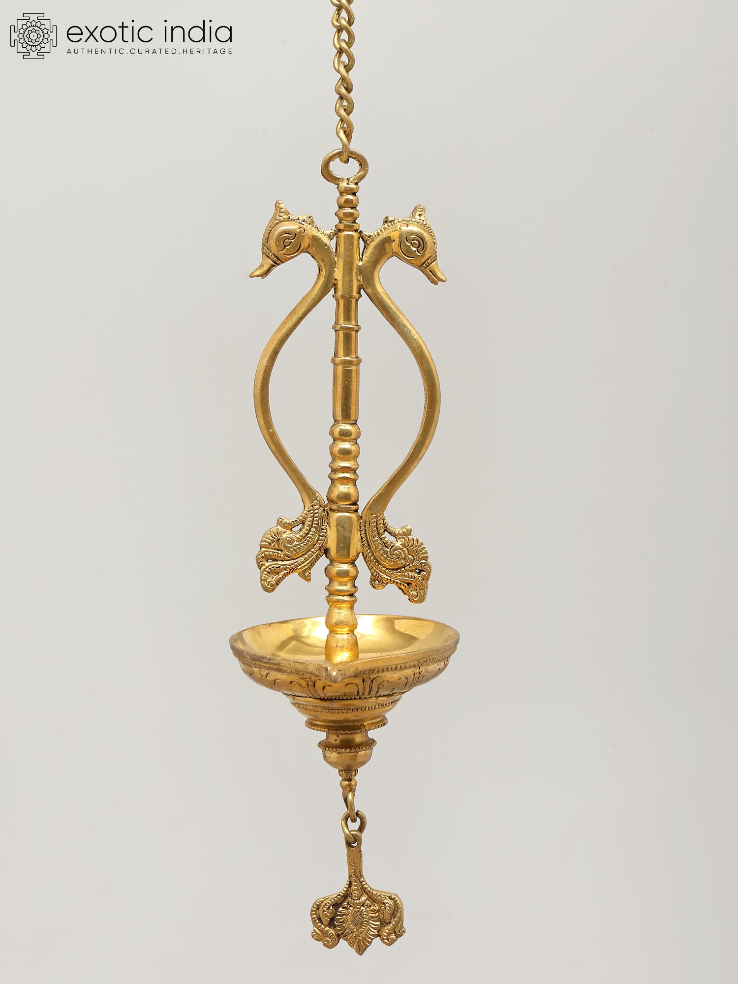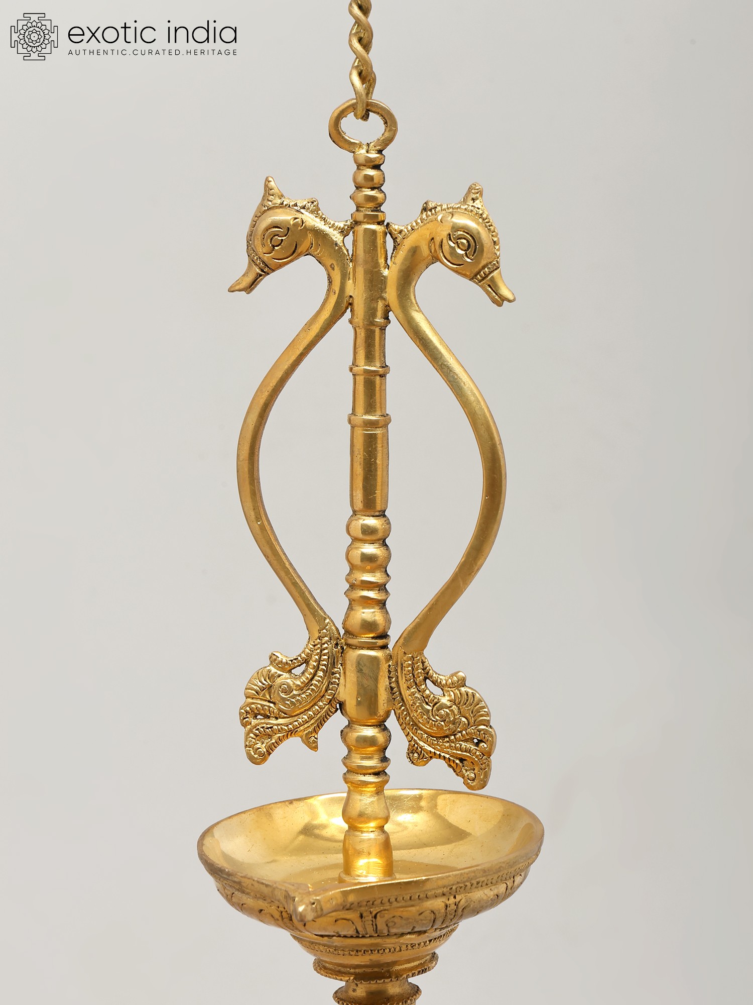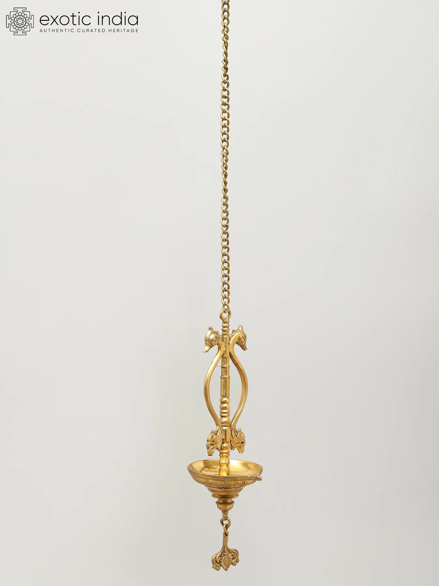 36" Brass Parrot Design Three Wicks Hanging Lamp