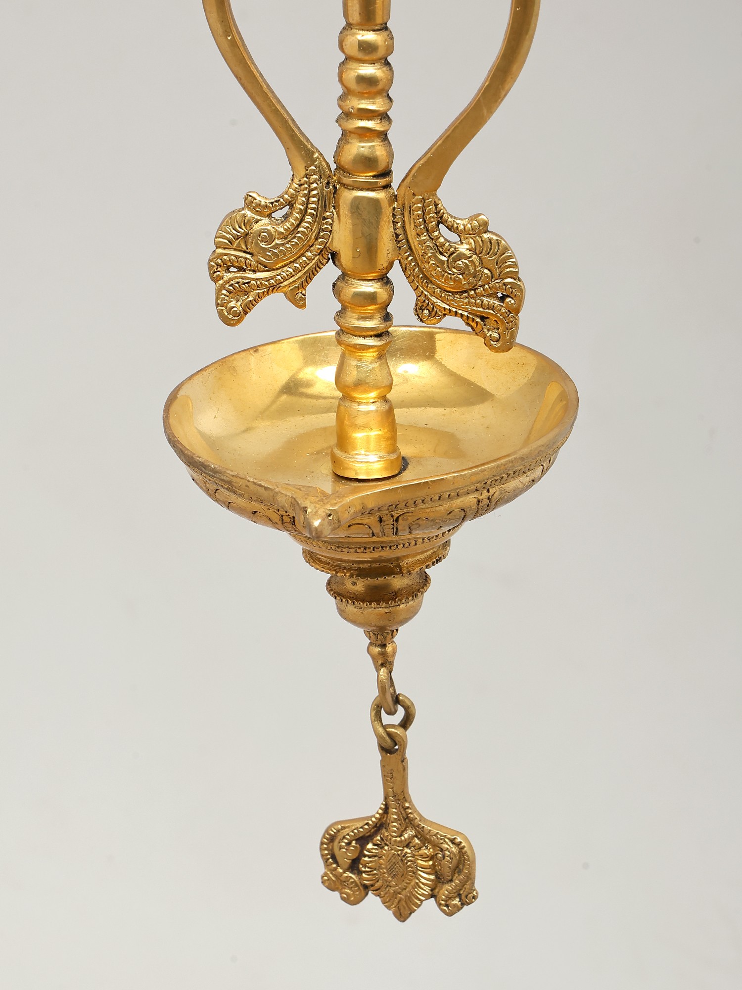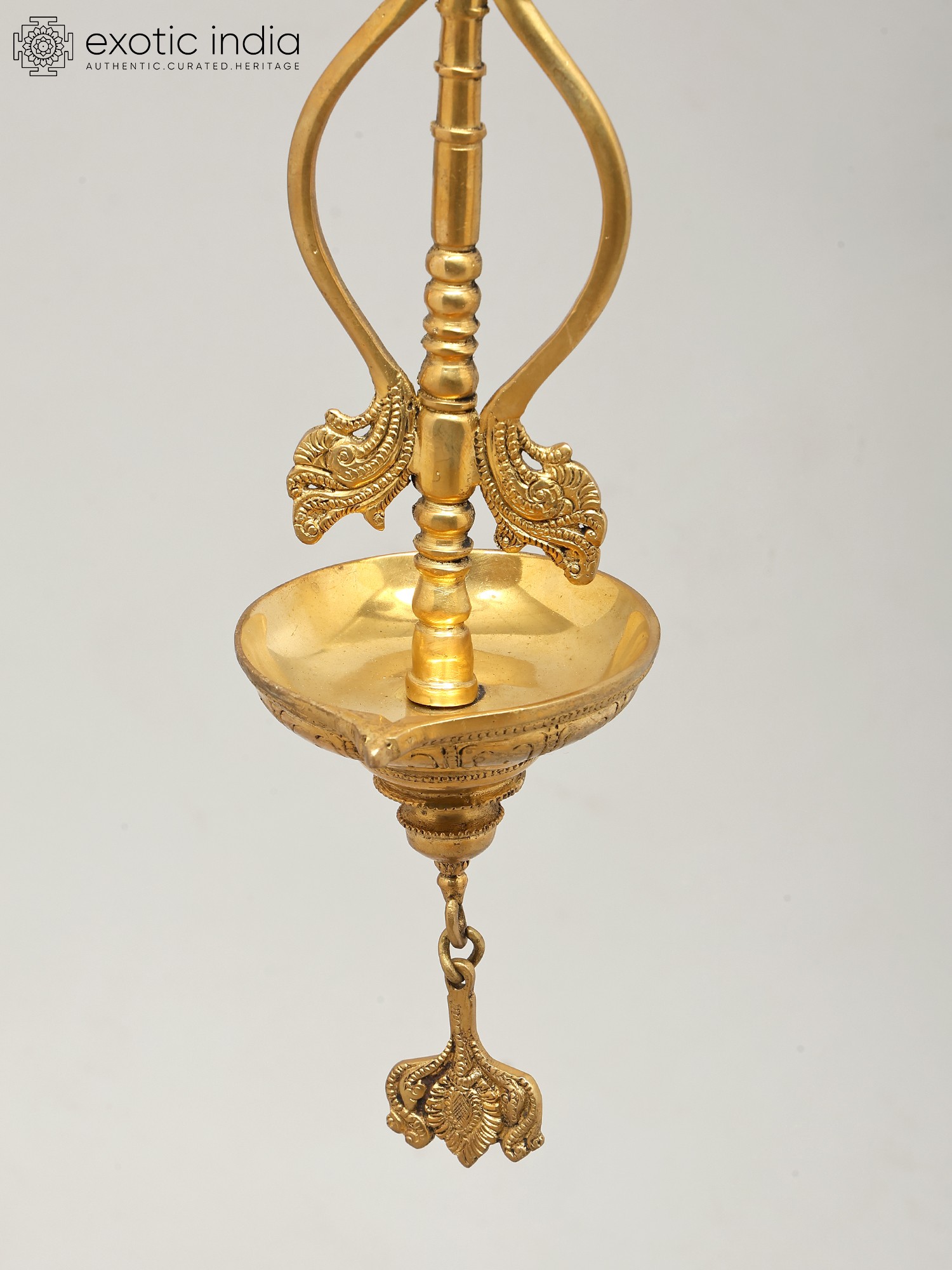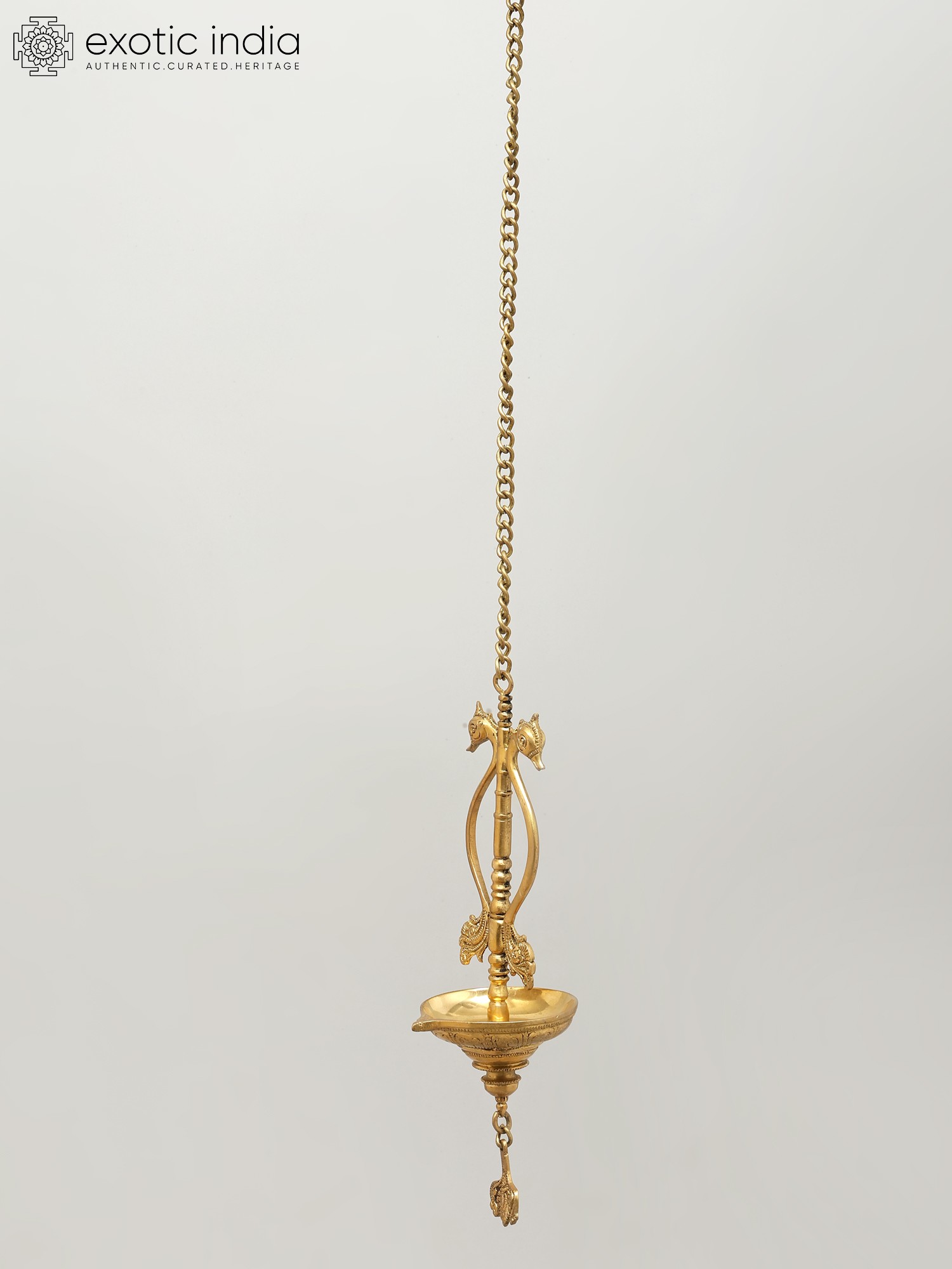 36" Brass Parrot Design Three Wicks Hanging Lamp