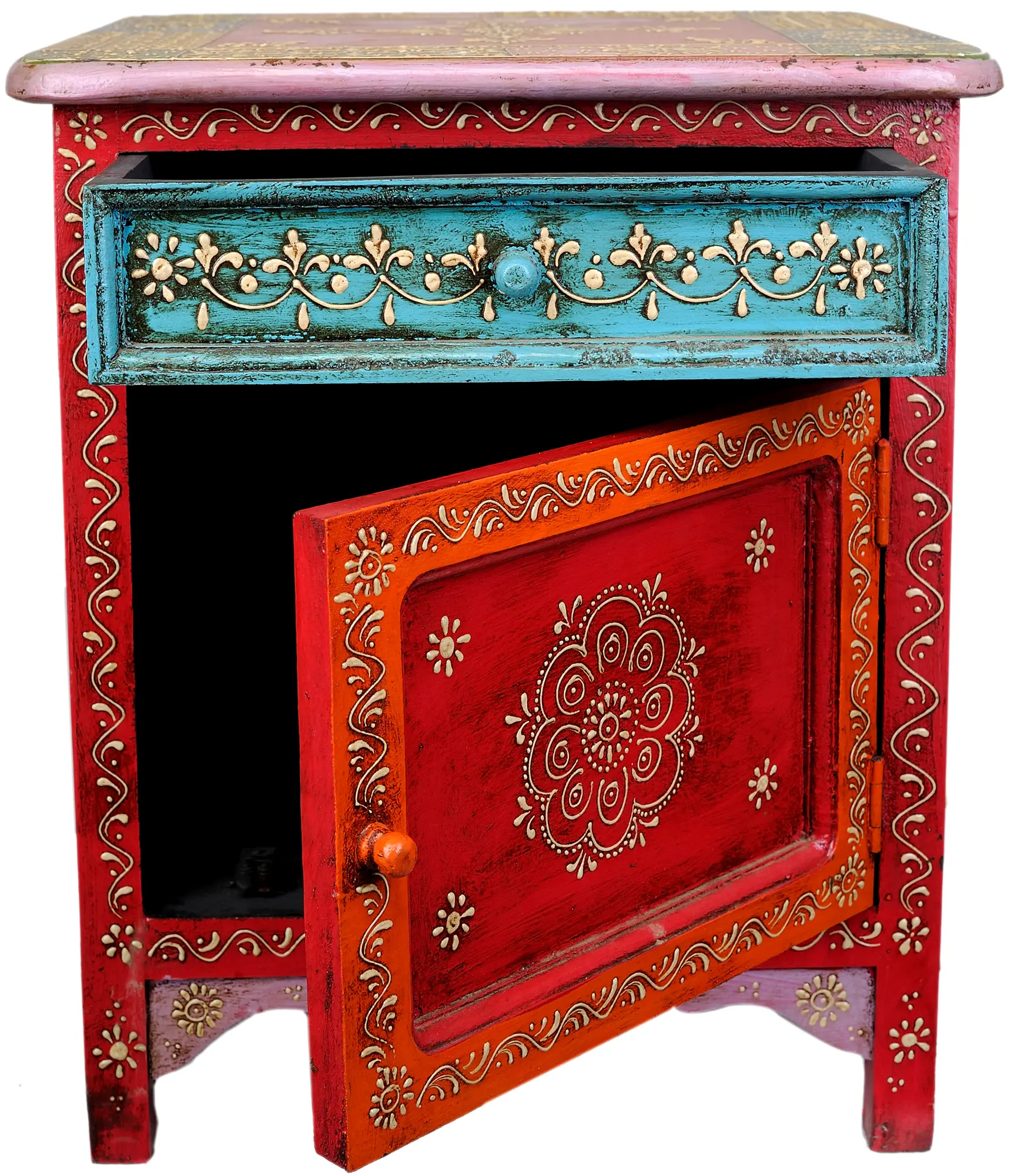 The handcrafted nature of this statue ensures that each piece is unique. The small imperfections and variations in the paint are not flaws, but rather marks of authenticity, whispering stories of the human touch and the dedication of the artisan. The drawer and door provide practical storage, offering a discreet place to keep small treasures and trinkets. The reds may evoke the energy of Durga, a powerful Hindu goddess, while the blues could represent the vastness of the sky or the depth of the ocean, symbolizing peace and tranquility. The overall effect is one of visual delight, a feast for the eyes that invites contemplation and inspires a sense of wonder.