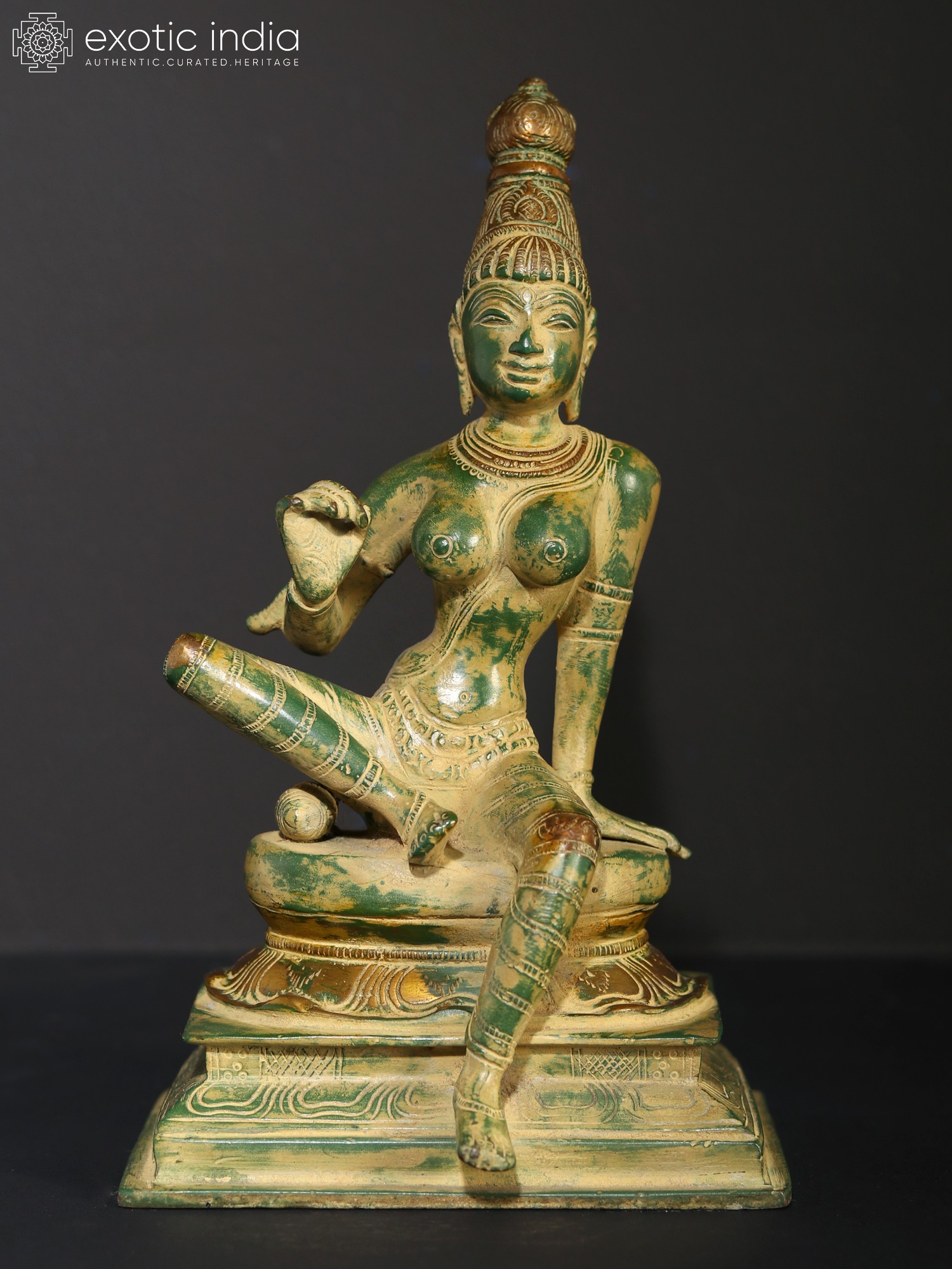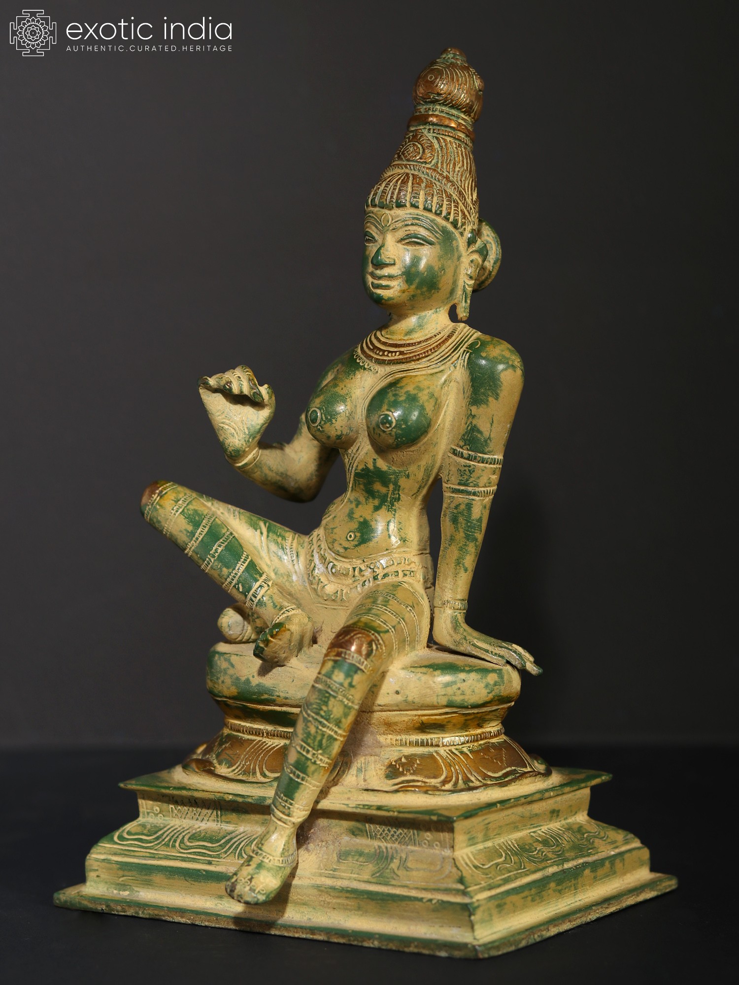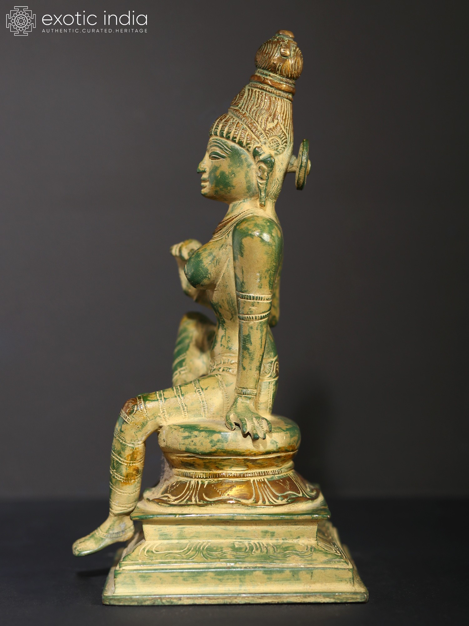 12" Devi Uma (Goddess Parvati) Seated in Lalitasana | Bronze Statue