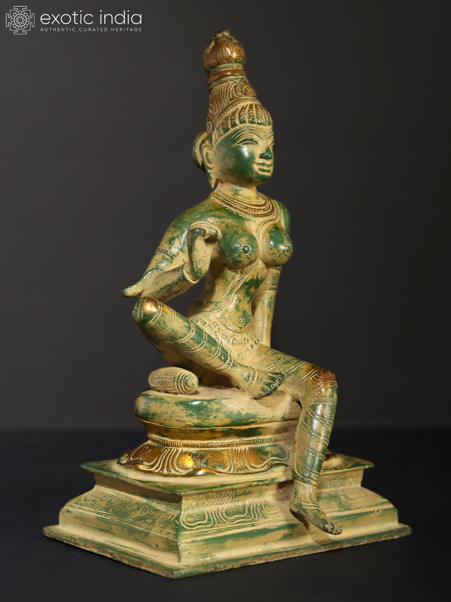 8" Seated Uma Brass Idol | Uma is used for Sati (Shiva's first wife, who is reborn as Parvati)