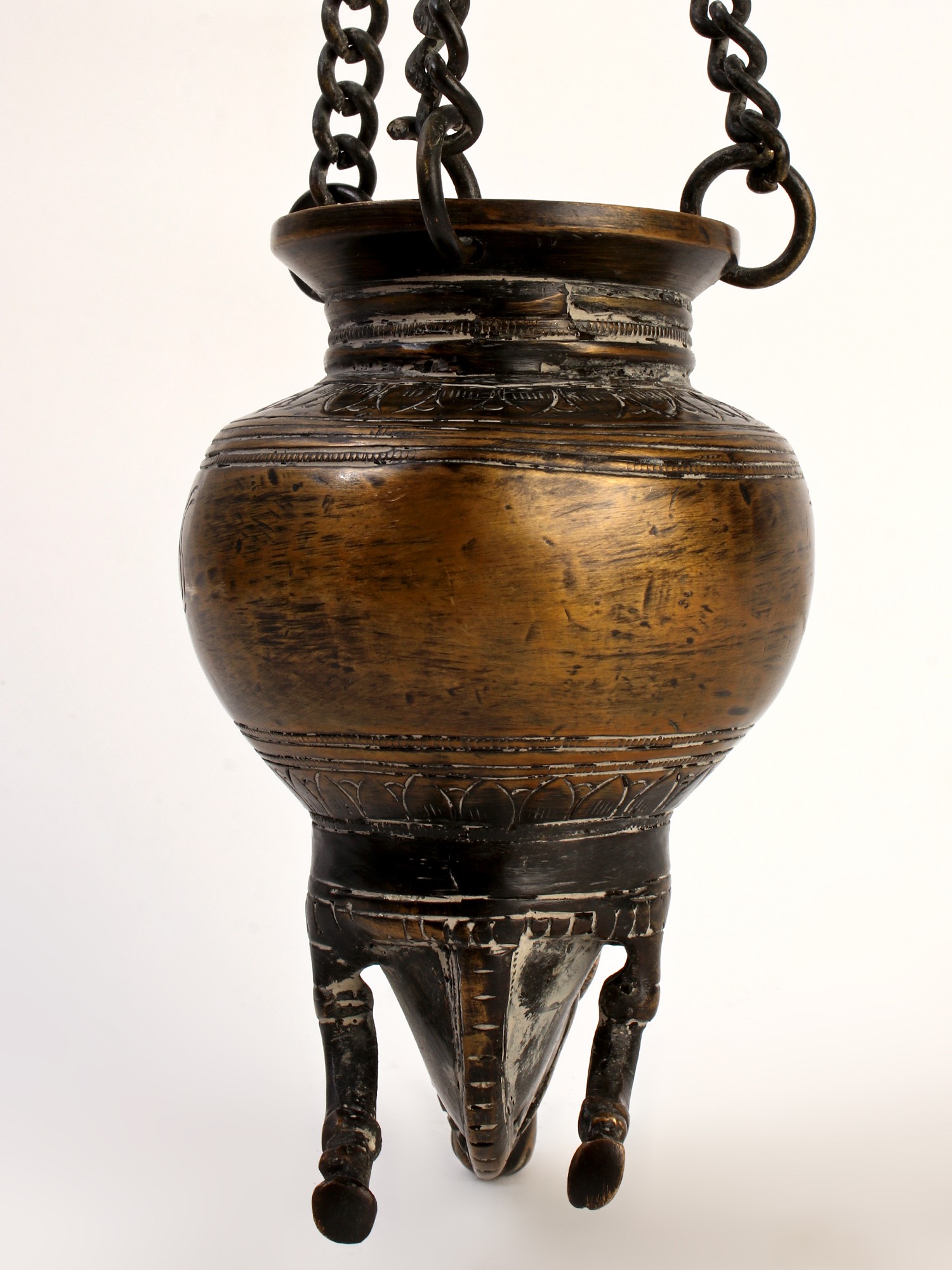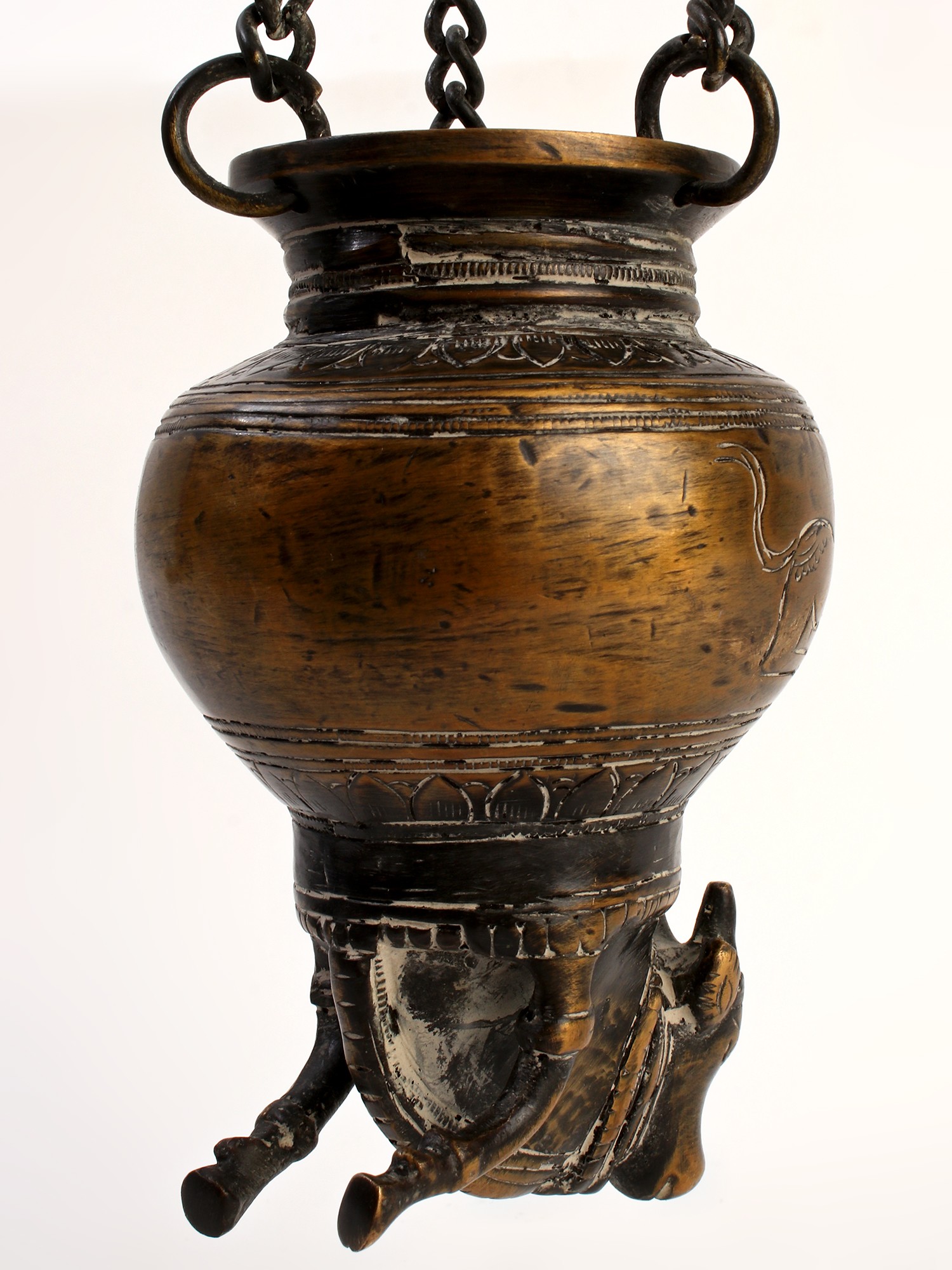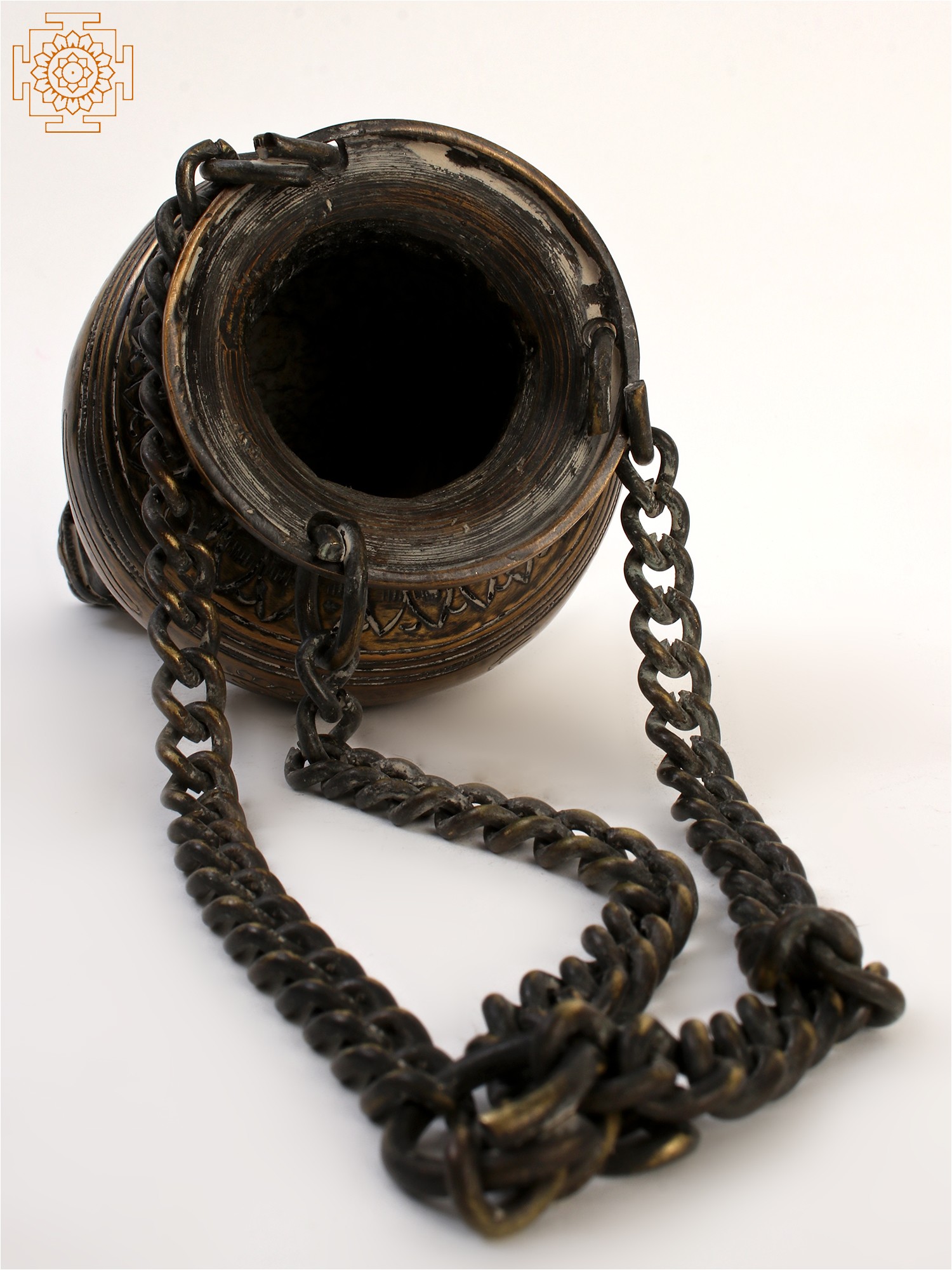 This brass vase is more than a functional piece; it is a conduit for the ancient ritual of pouring milk, the purest offering, over the revered Shiva Linga. Adorning this vase are intricate carvings of Nandi, Lord Shiva's loyal vehicle and divine steed. Nandi is not just a symbol; he is the embodiment of unwavering devotion and pure surrender to the divine. His presence on this vase amplifies its sacred significance.