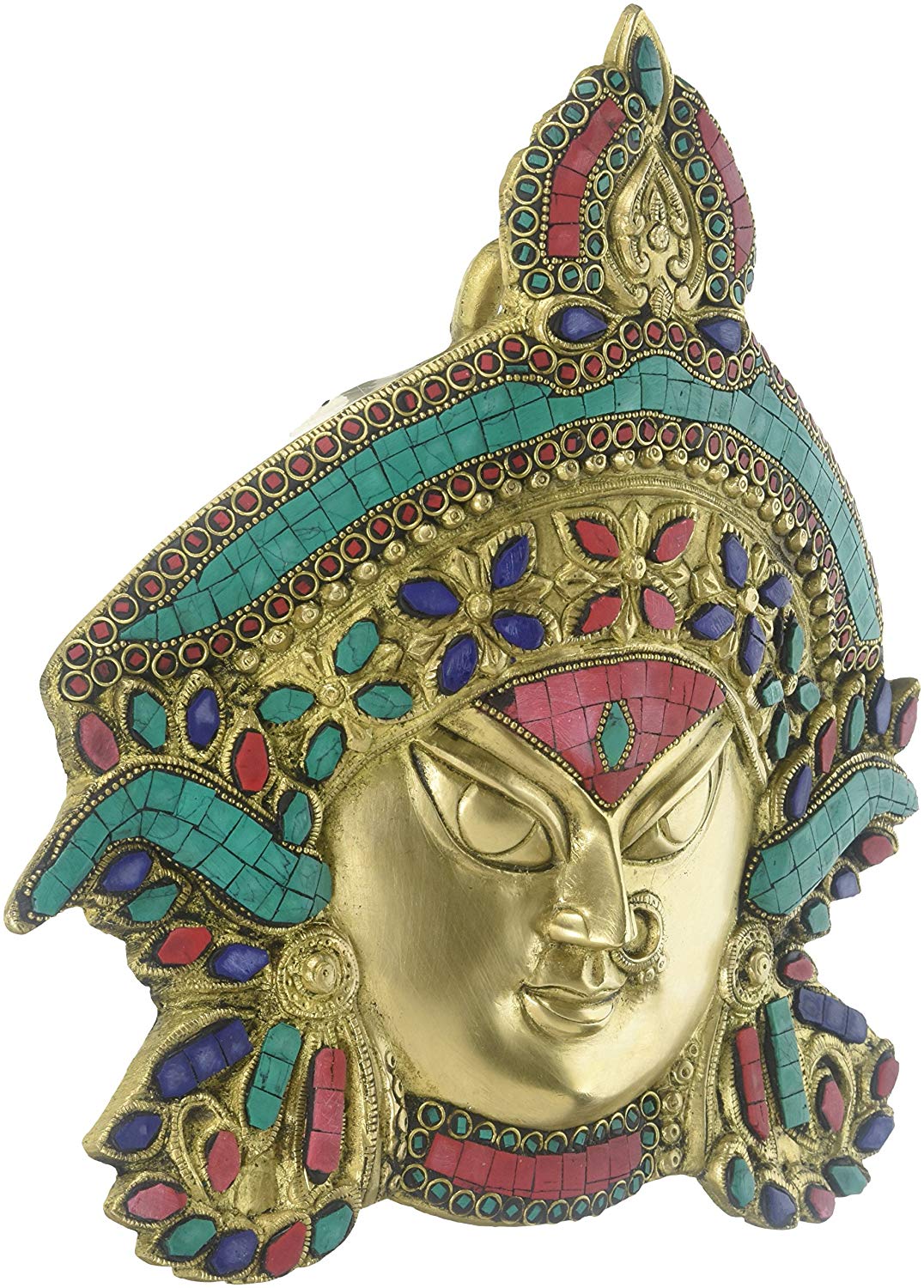 Durga, a principal deity in Hinduism, is celebrated as the mother goddess who protects the universe from demonic forces. Her legends are rich with tales of her triumph over formidable adversaries like Mahishasura, the buffalo demon. She is often depicted with multiple arms, each carrying a weapon or symbol of her power, ready to defend righteousness. This wall hanging, while focusing on her powerful head, encapsulates that same indomitable spirit. The craftsmanship draws upon centuries-old artistic traditions, where brass has been favored for its durability and its ability to hold intricate carvings, believed to channel positive energies. Bringing this representation of Durga into your home is an invitation for her protective blessings, a reminder of inner strength, and a testament to the enduring power of the divine feminine. It serves not only as a stunning piece of art but also as a spiritual anchor, radiating peace and courage.