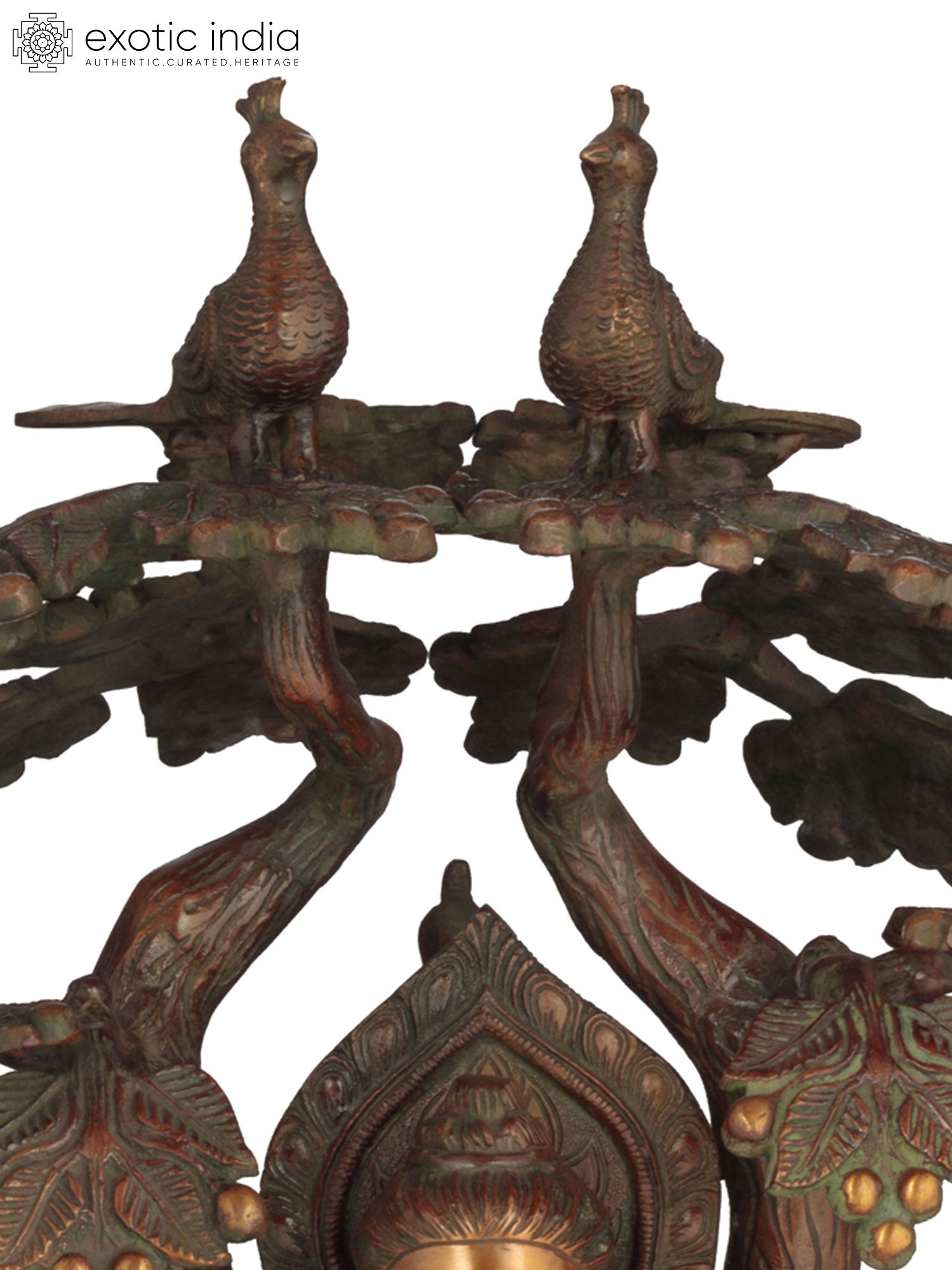 Bodhi tree sculpted here in a unique stylistic manner with the symmetrical thick branches emerging out from the sides having outgrown beautiful leaves and bunches of figs hang on it; this sacred fig tree is symbolic of compassion, faith, wisdom and is also significant as the tree of enlightenment. It is said that Gautama Buddha sheltered under this tree where he was journeying to the path of enlightenment.