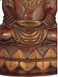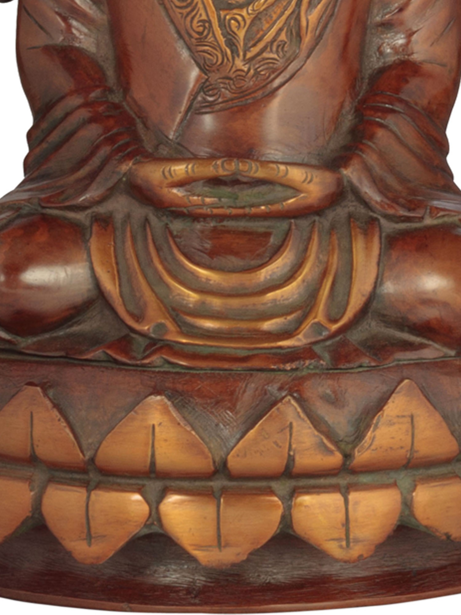 The rare Buddha figure with the long leaf shaped crown with petalled borders and the lavish robe garbed in an indifferent manner, flows in an ease forming mesmerizing and comforting pleats at the bottom; texture of his long ears and that of his matted hair gives realistic vibes of concentration and cleanliness; posture of his hands, of fingers overlapping each other forming a triangle in between is an indication of him being in his dhyan.