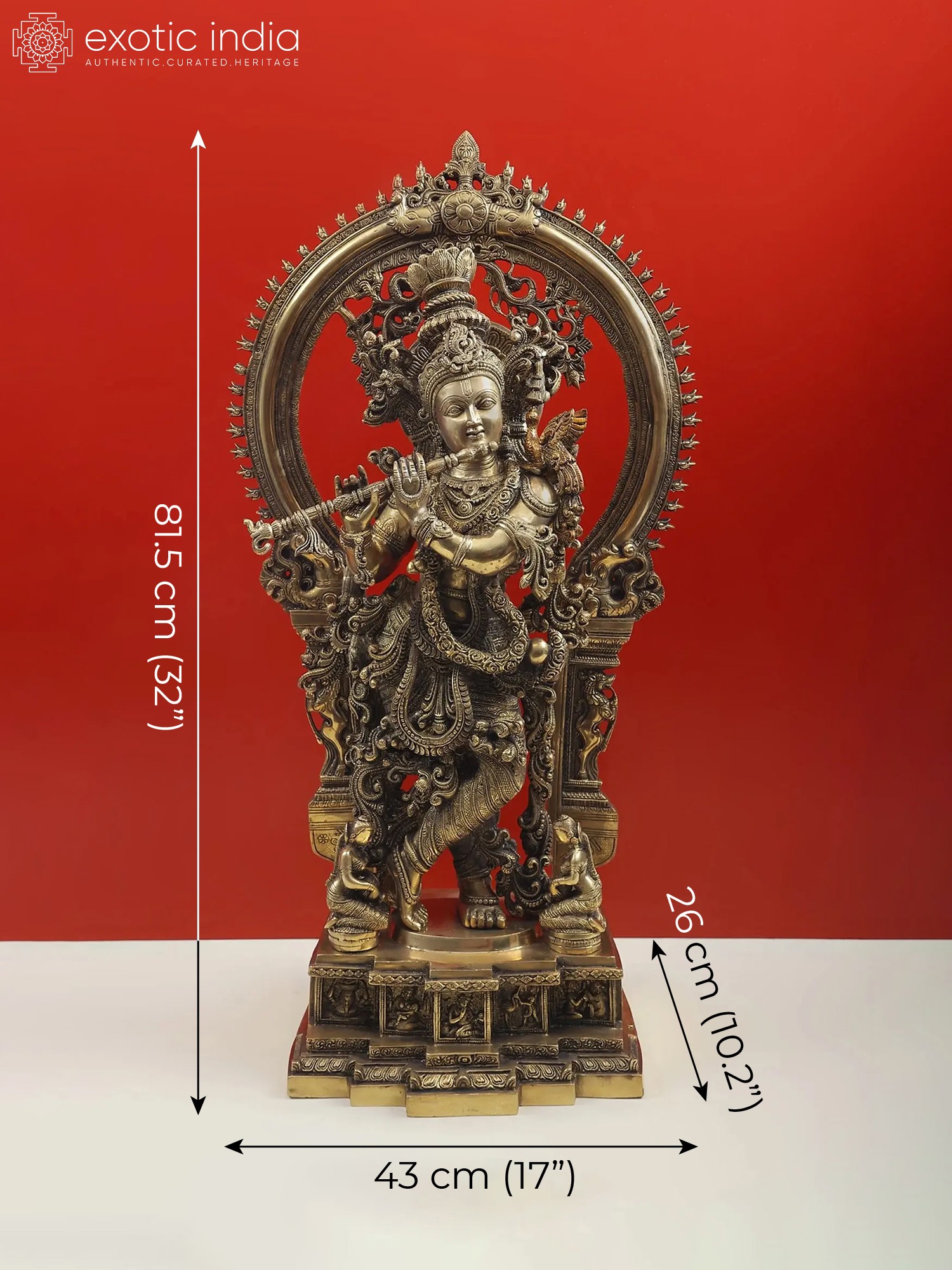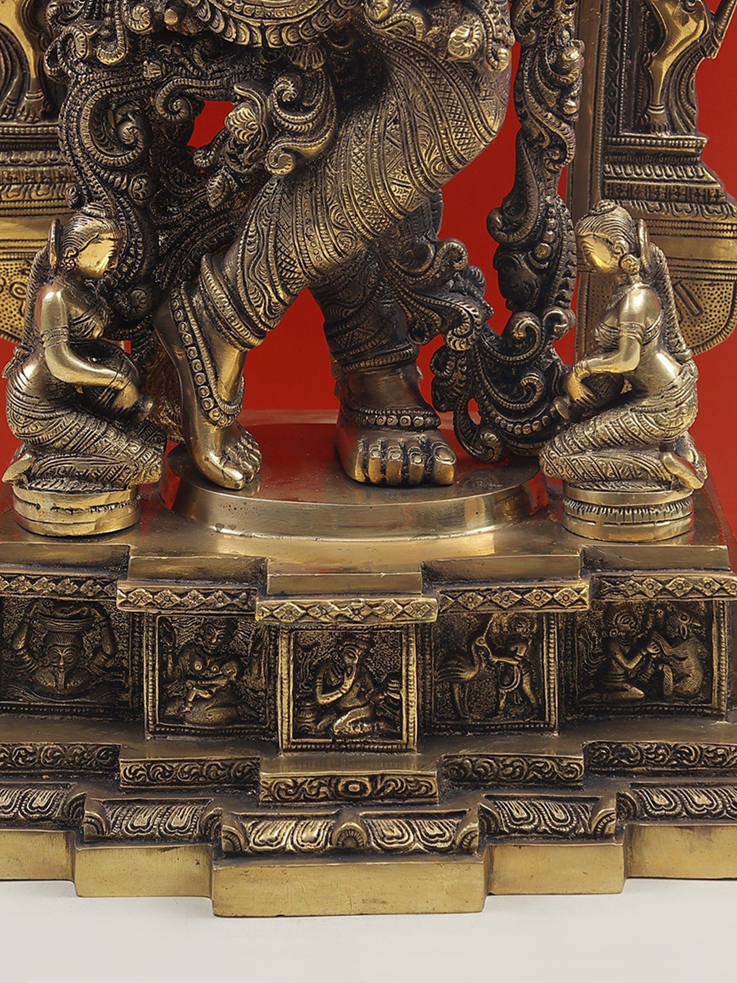 Fine Quality Large Lord Krishna and Gopis on his Feet With Baal-Lila On The Pedestal