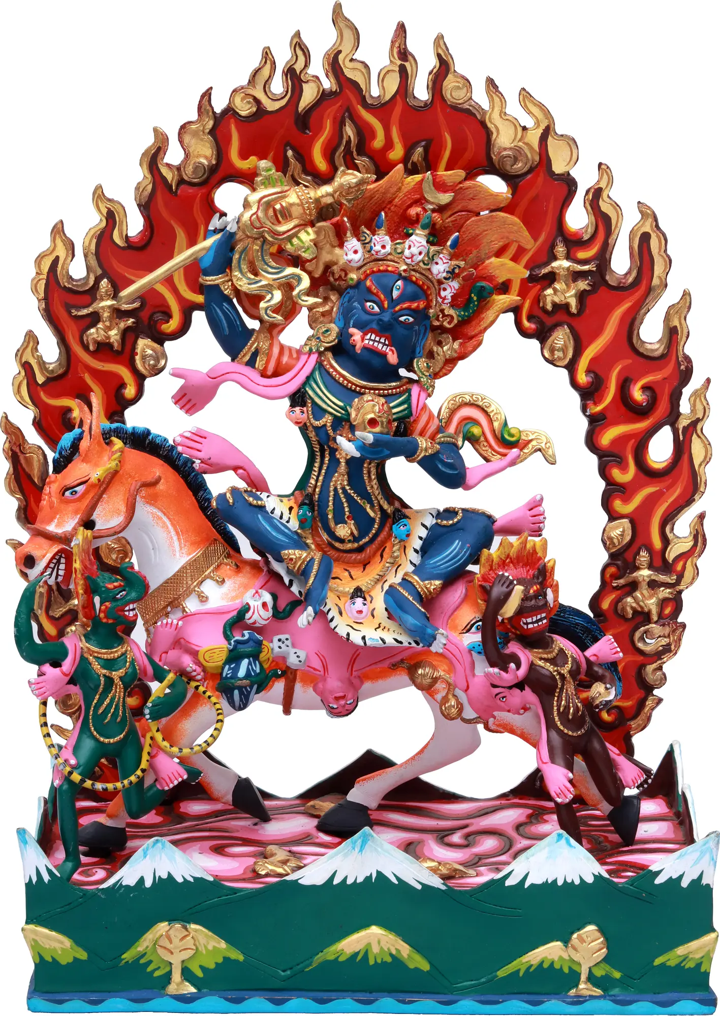 Now comes the most important part of Nepalese art which is gold gilding. This is done by the traditional fire gilding method. A mixture of mercury and 18K gold is applied on the surface of the statue and heat is applied using a flame torch. The result is that mercury evaporates along with impurities, leaving a pure 24K gold finish.