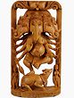This magnificent piece is expertly carved from Kadamba wood, known for its light color, fine grain, and smooth texture. The artisans of Jaipur, renowned for their intricate wood carving traditions, have meticulously crafted every detail, from the multiple heads and arms of Ganesha to the serene expressions on his faces. Notice the carefully rendered details of his attire, the ornaments adorning his body, and the various implements he holds in his hands, each symbolizing a different aspect of his power and wisdom. His trusty vahana (mount), the mouse, is also depicted, further symbolizing the ability to overcome obstacles and challenges. The mouse, often considered a pest, is under Ganesha's control, representing the conquest of ego and desires. The statue's warm tones of the Kadamba wood add to its elegance and charm, making it a captivating addition to any space. This wood is also known for its durability, suggesting that this statue will last for generations.