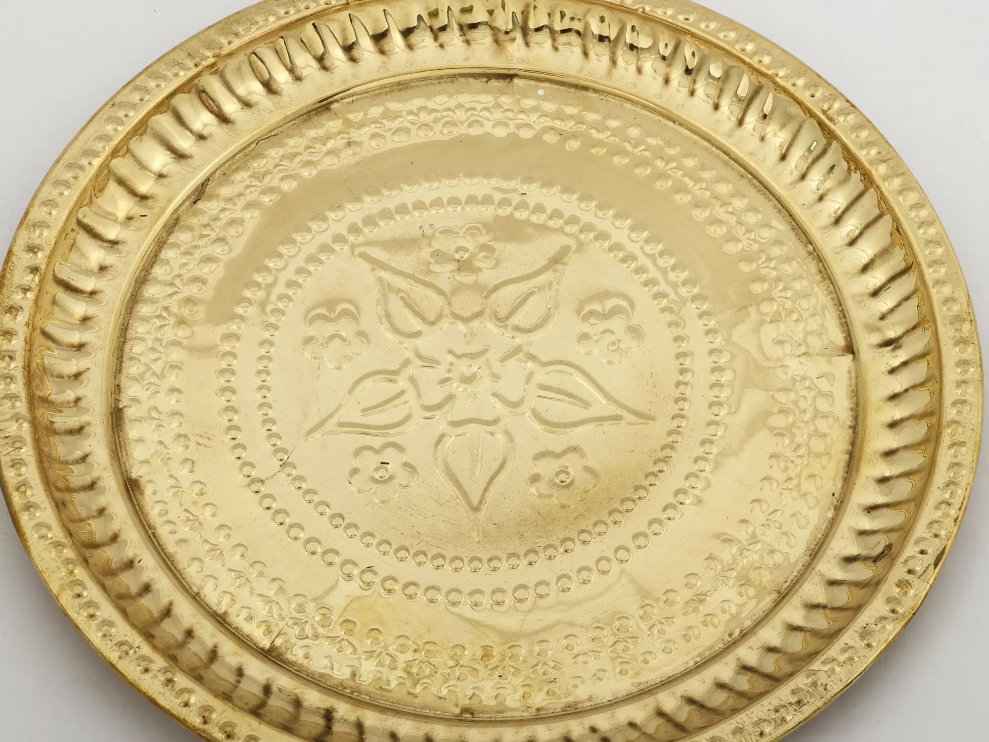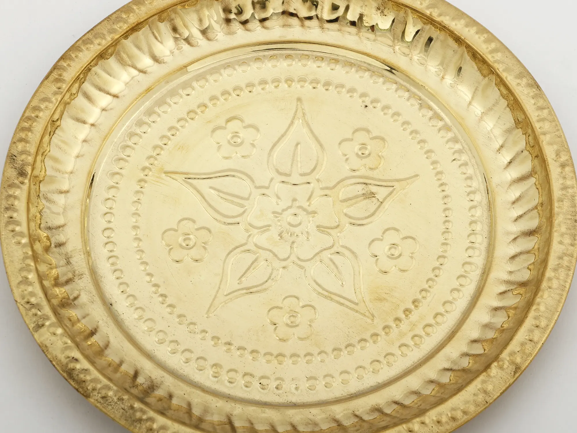 Enhance your rituals with the elegance of our Brass Floral Design Pooja Plate. Crafted with intricate detailing and a floral motif, it's a symbol of purity and devotion. This plate serves as a sacred canvas for your offerings, adding a touch of sincerity and grace to your worship.