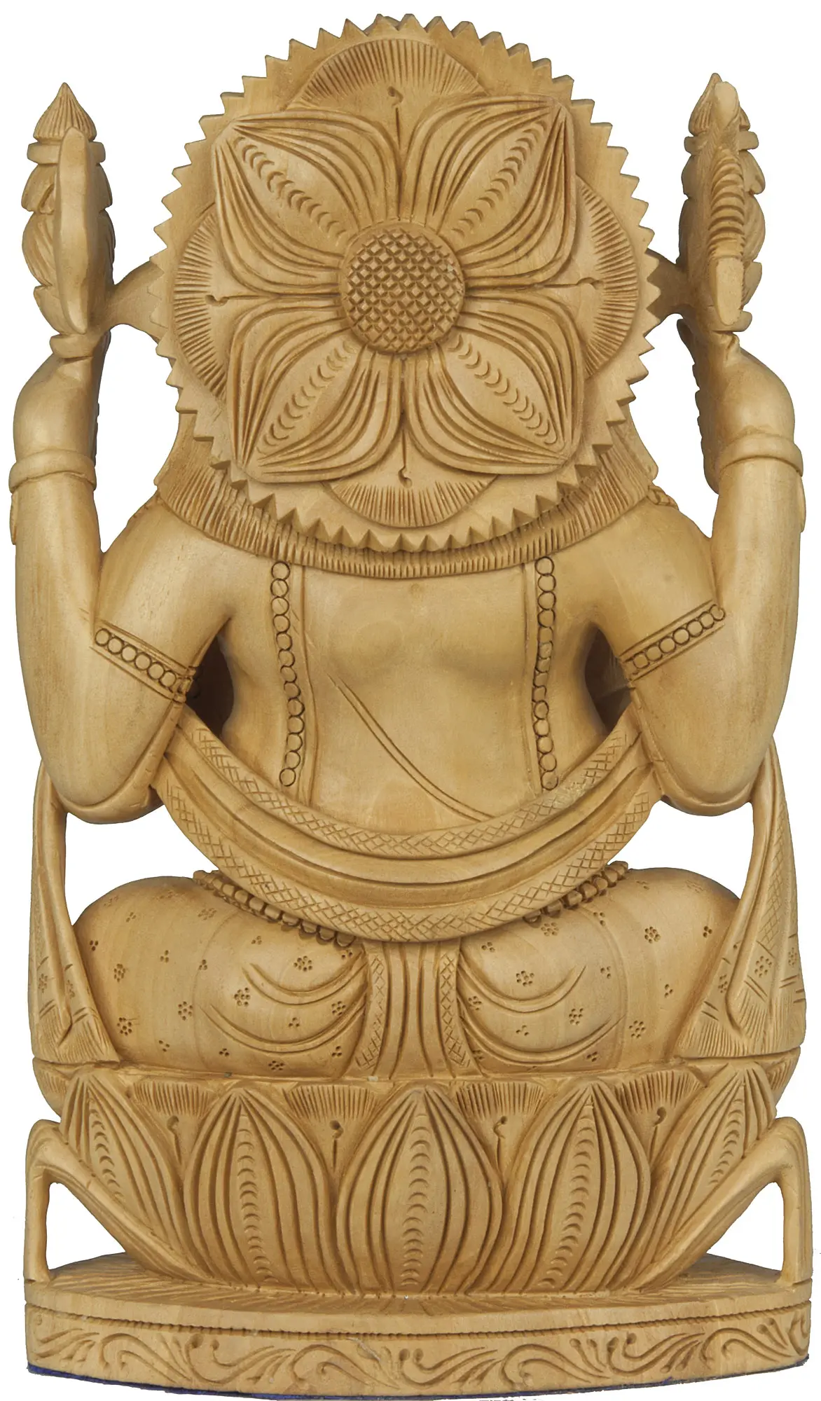 This exquisite sculpture originates from the city of Jaipur, Rajasthan, a region renowned for its rich artistic heritage and skilled craftsmanship. Passed down through generations, the art of wood carving in Jaipur is celebrated for its intricate detailing and devotion to traditional motifs. Each curve, line, and embellishment is a testament to the artisan's expertise and dedication. This handcrafted piece carries the legacy of Jaipur's artistic traditions, bringing a touch of Indian cultural heritage into your home. The choice of Kadamba wood, known for its smooth texture and suitability for carving, further enhances the sculpture's aesthetic appeal and ensures its longevity.