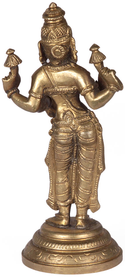 The most striking feature of the iconography of Lakshmi is her persistent association with the lotus. The meaning of the lotus, in relation to Goddess Lakshmi, refers to her purity and spiritual power. Rooted in the mud but blossoming above the water, completely uncontaminated by the mud, the lotus represents spiritual perfection and authority. Two divine characteristics of this supremely popular goddess. Click Here to View the Reverse of this sculpture.