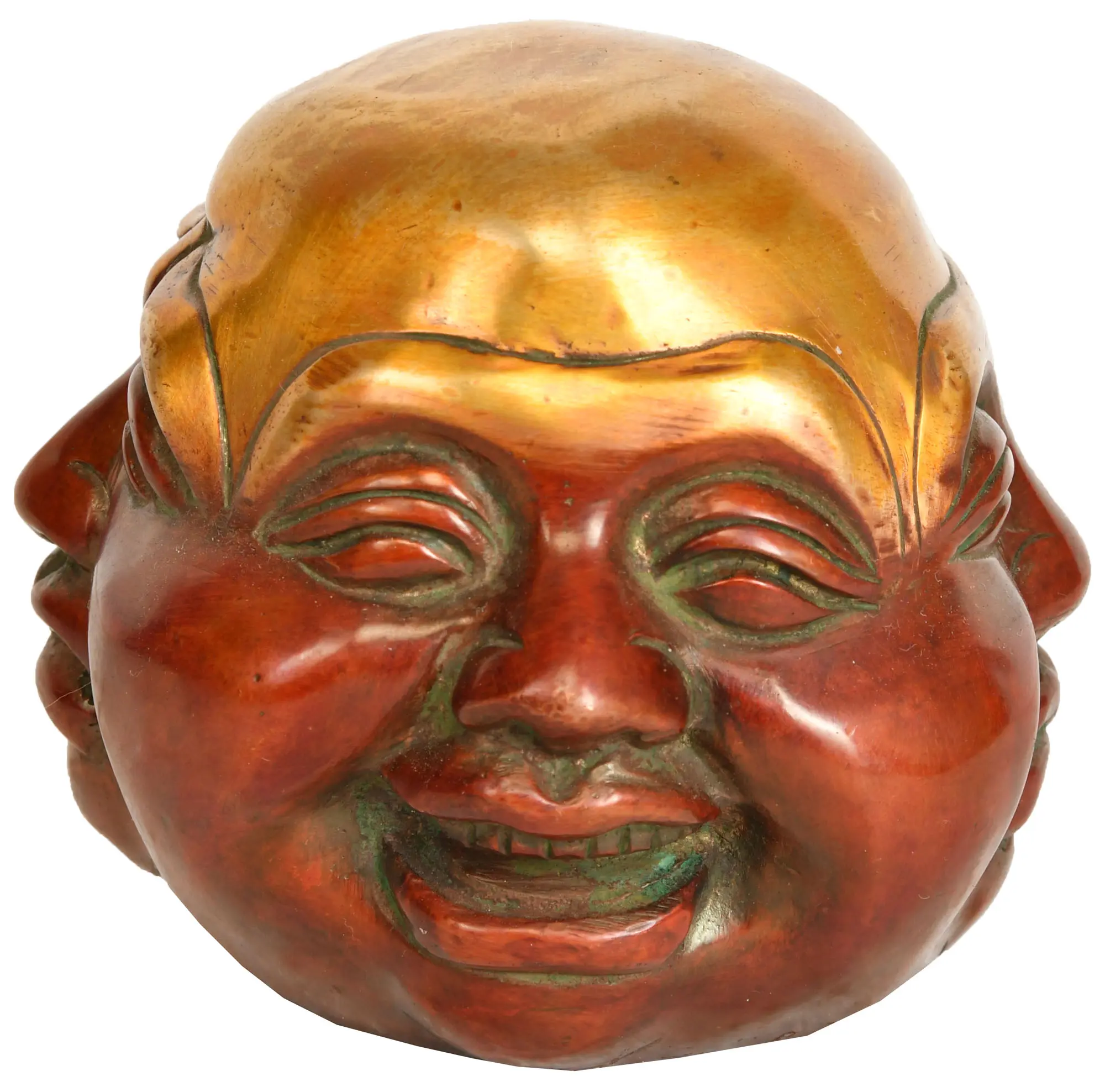 3" Four Faced Head of Laughing Buddha (Tibetan Buddhist) in Brass | Handmade | Made In India