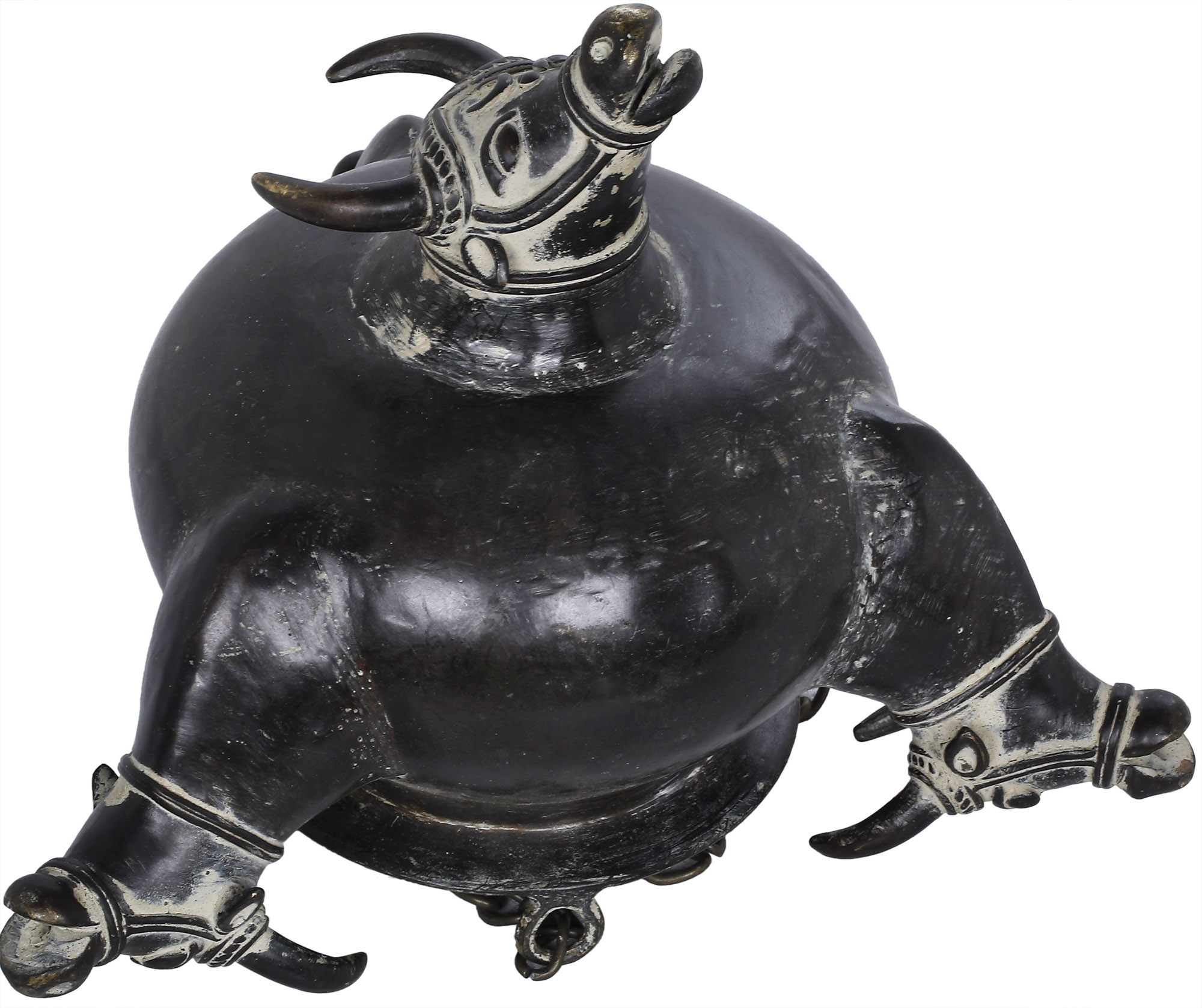 Embrace the divine with this exquisite brass vessel, a masterpiece designed to elevate your spiritual practices. Inspired by the revered Nandi, the celestial bull and loyal vahana of Lord Shiva, this piece embodies devotion, strength, and auspiciousness. The intricate craftsmanship showcases four distinct Nandi heads emerging from the body of the vessel, each exuding a sense of vigilance and grace. These symbolic representations are not merely decorative; they are believed to channel divine energies and blessings, making this a potent addition to any altar or sacred space.