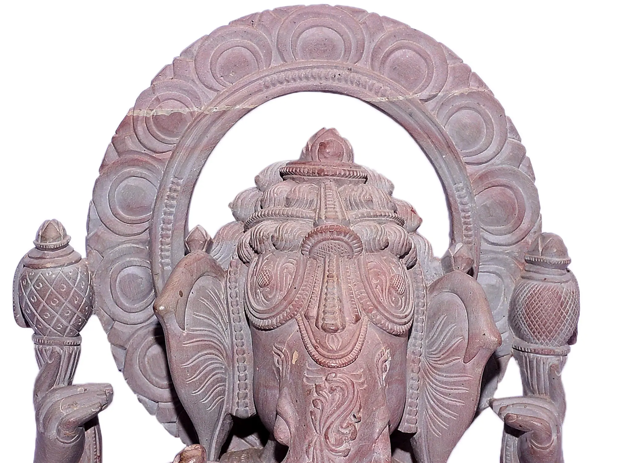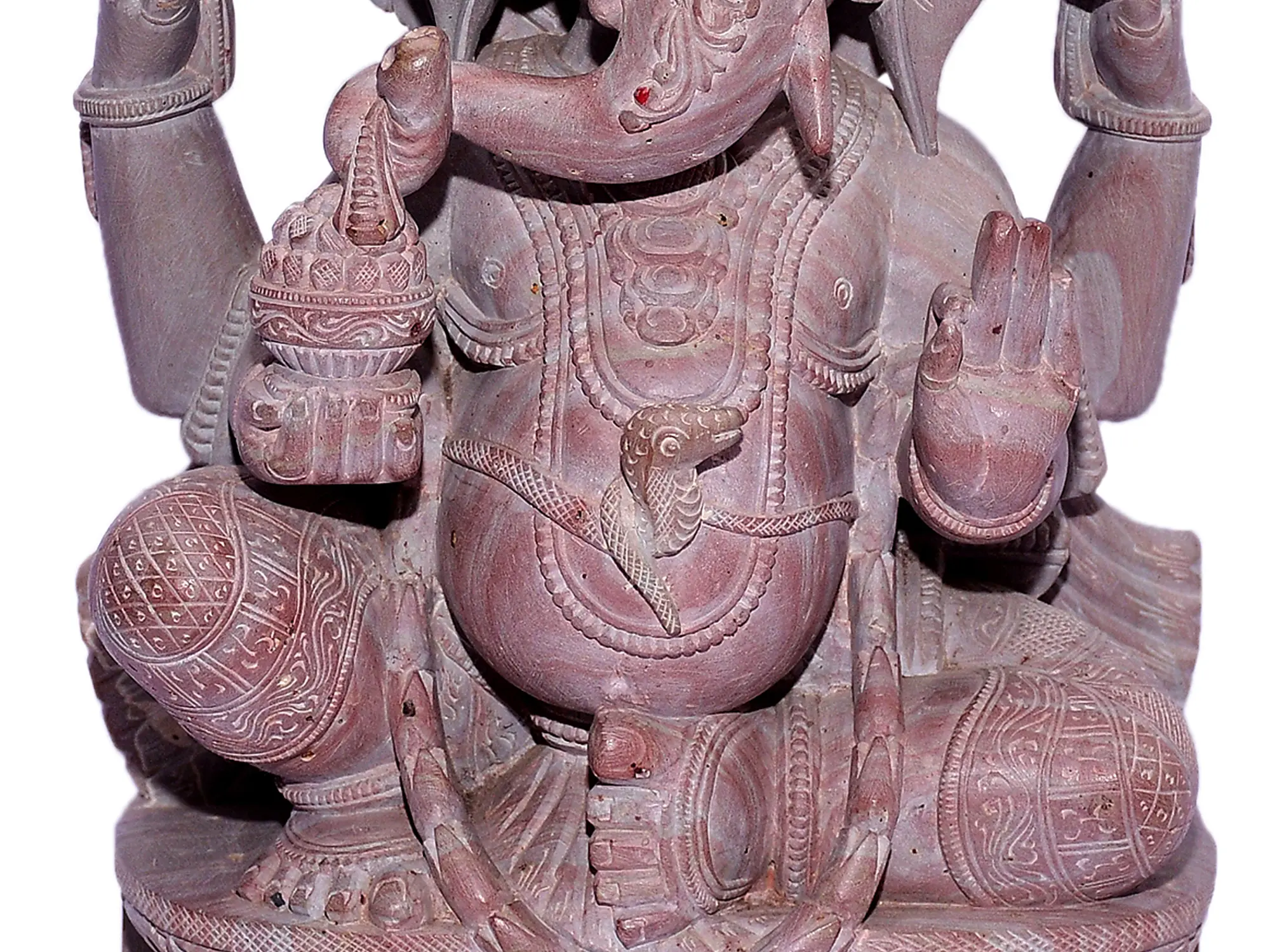 15" Chaturbhuja Ganesha Red Serpentine Stone