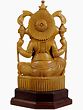 Sourced from the verdant landscapes of Trivandrum, the white cedar wood lends a natural warmth and a subtle fragrance to this sculpture. The artisans have skillfully transformed the raw material into a symbol of profound significance, using techniques passed down through generations. Notice the fine detailing, achieved through careful carving and polishing, which highlights the natural beauty of the wood. The wood's light color gives a beautiful, natural tone to the idol. The statue sits atop a dark wooden base, adding a contrasting visual element that makes the idol stand out even more.