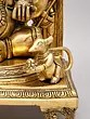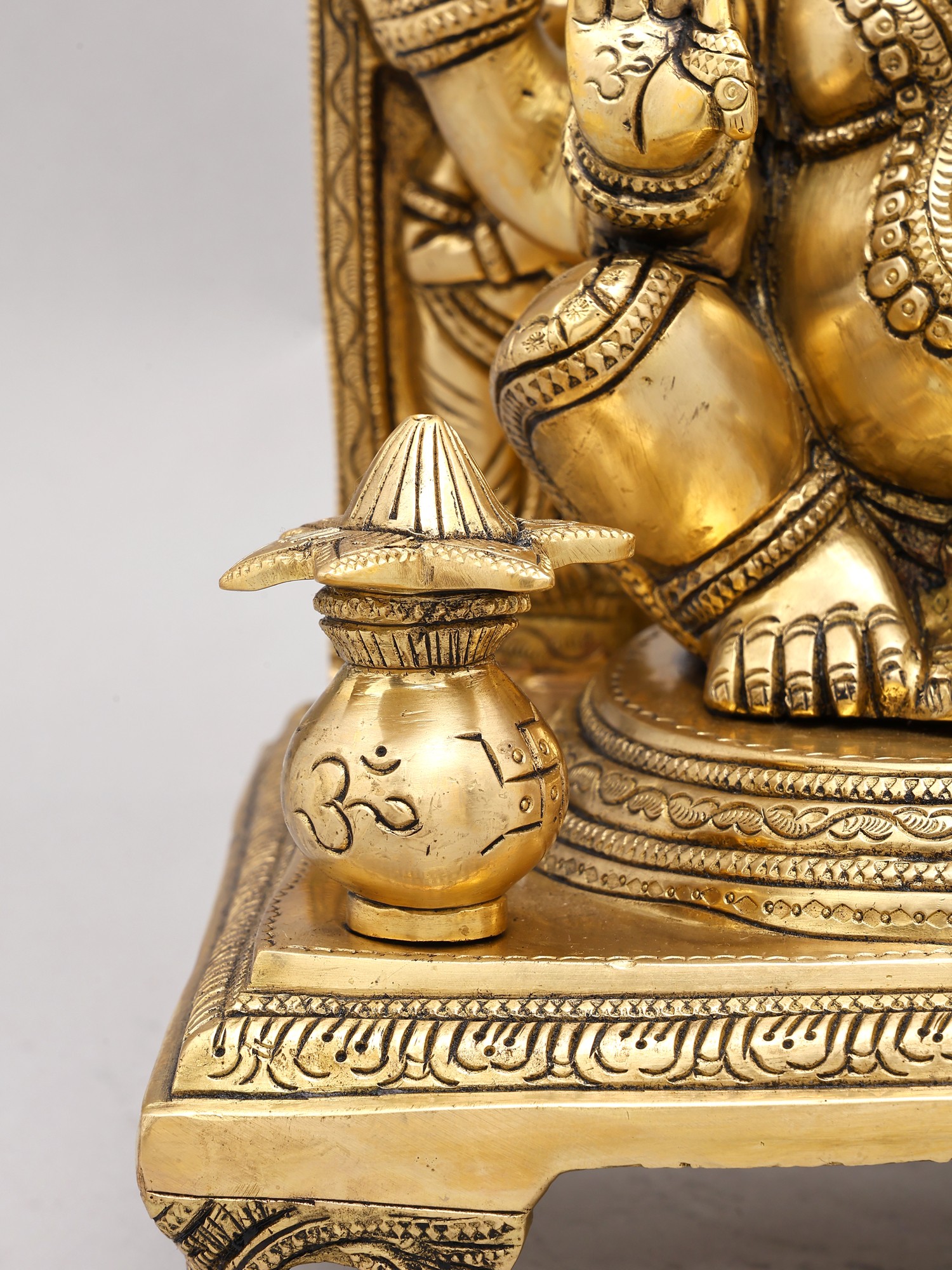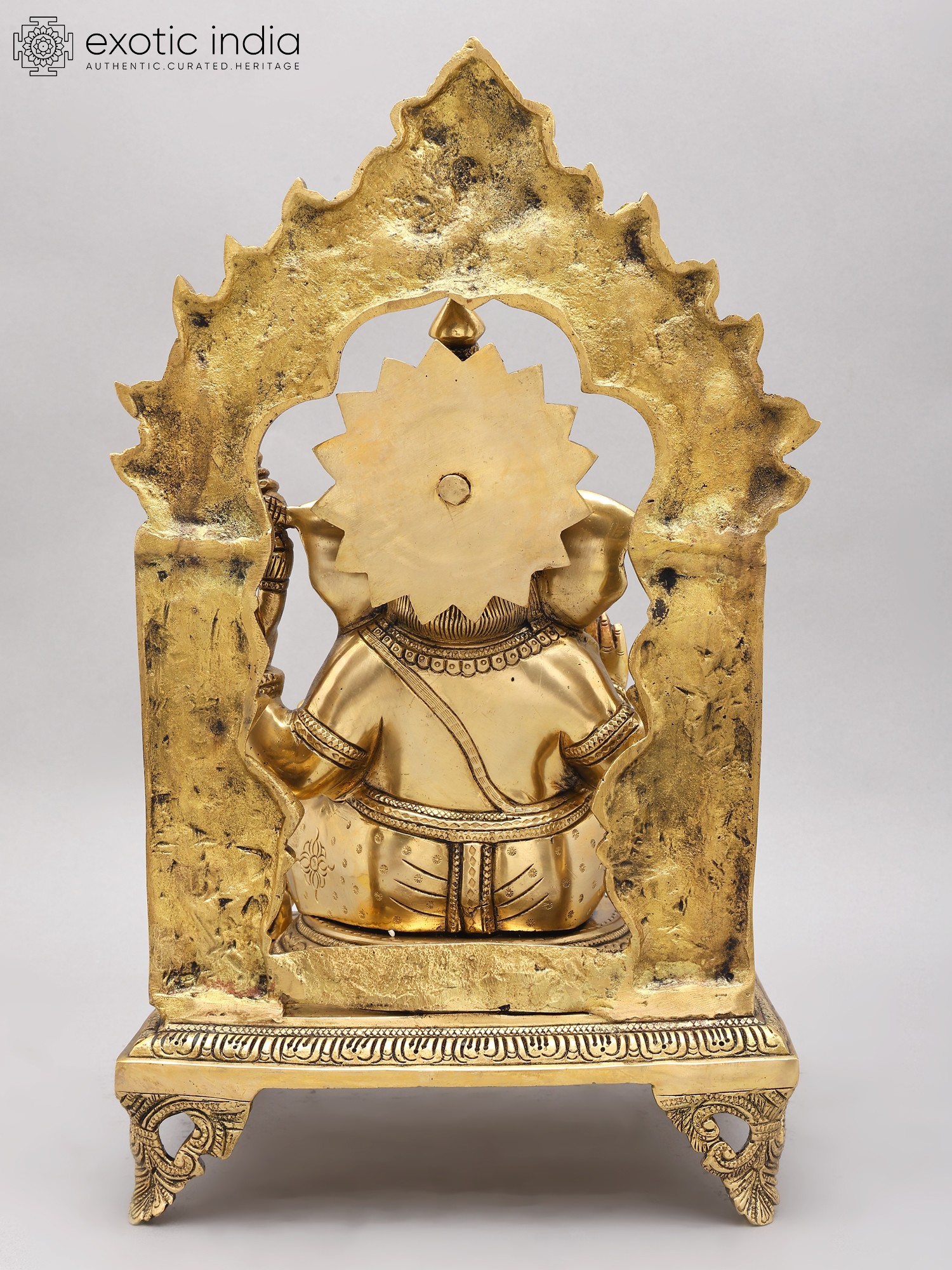 This statue is more than just a decorative piece; it's a work of art, meticulously crafted by skilled artisans using traditional methods. The rich, golden hue of the brass enhances the intricate details, from the delicate floral motifs adorning his throne to the nuanced expressions etched onto his face. Each curve, each line, each embellishment speaks to the dedication and artistry involved in its creation. The solid brass construction ensures durability and longevity, meaning this statue will remain a cherished possession for generations to come. Its substantial size and weighty presence further contribute to its regal aura. Place it in your home as a focal point, an object of beauty and reverence, inviting positive energy and creating a tranquil atmosphere.