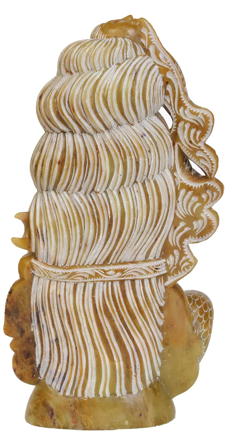 Invite a sense of serene majesty and formidable strength into your sanctuary with this exquisite stone sculpture. It captures a profound moment of divine presence, offering a focal point for contemplation and a testament to enduring spiritual artistry. You'll appreciate the intricate details that speak of a tradition steeped in devotion and skilled craftsmanship.