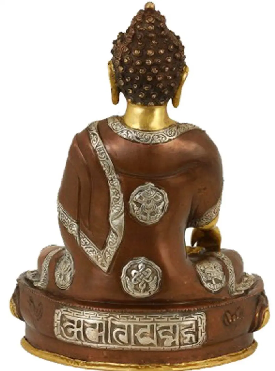Crafted from high-quality brass, this statue is a testament to skilled artistry. The lustrous finish of the brass catches the light, imbuing the figure with a radiant aura. The intricate detailing on the robes, the serene expression on Buddha's face, and the perfectly rendered hand gestures all speak to a deep understanding and reverence for the subject. The rich, earthy tones of the robes, complemented by the golden hue of Buddha's skin and the ornate base, create a visually captivating piece that is both aesthetically pleasing and spiritually uplifting. Each element of the statue is meticulously shaped to convey the profound tranquility and immense compassion associated with the Awakened One. ––––––––––