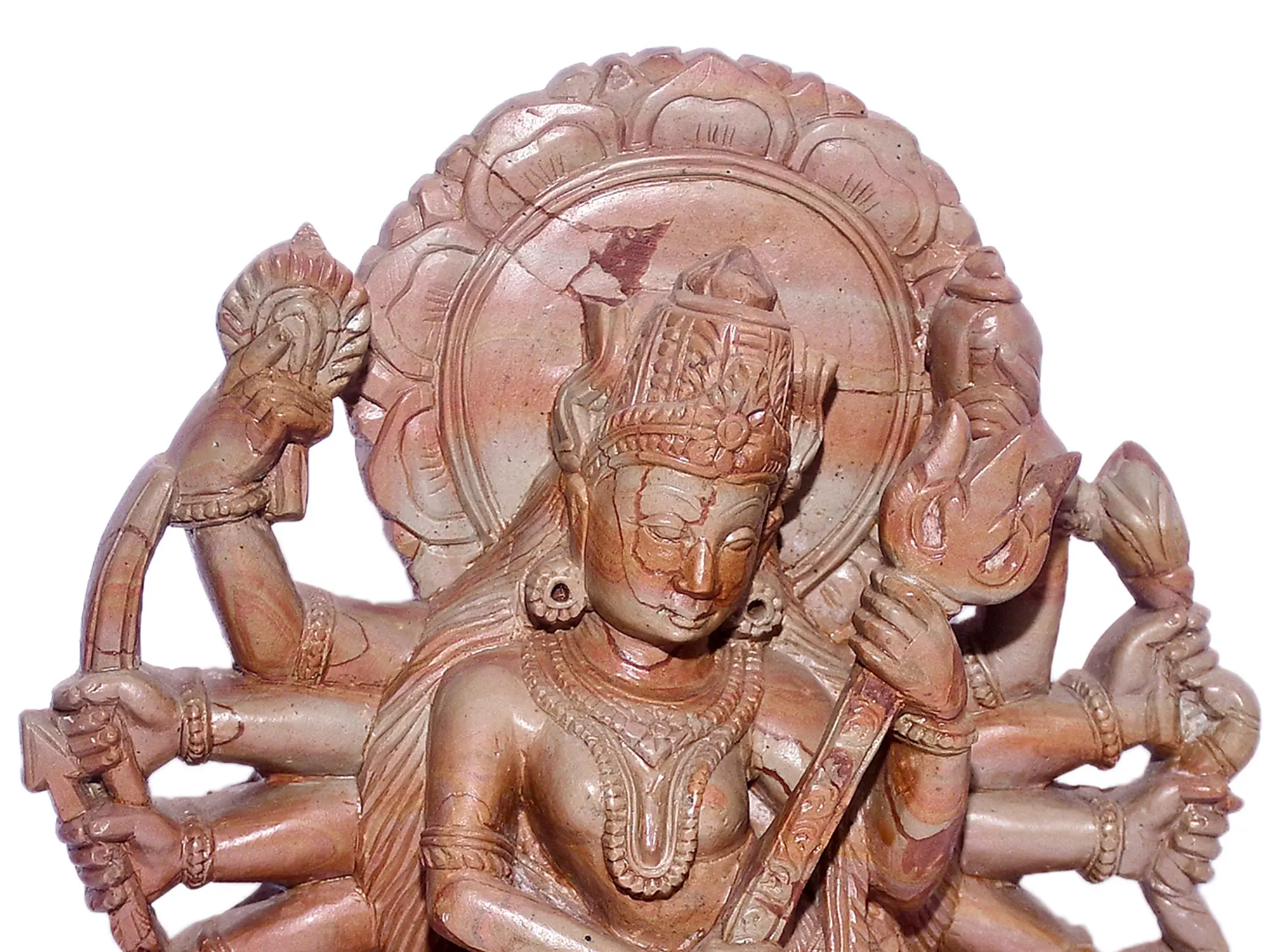10" Durga Story Carving On Brass Conch Wall Hanging