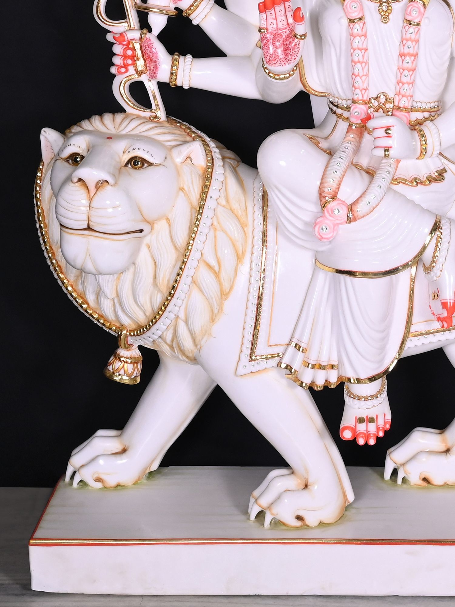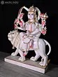 30" Durga Maa Statue Seated On Lion in Super White Marble