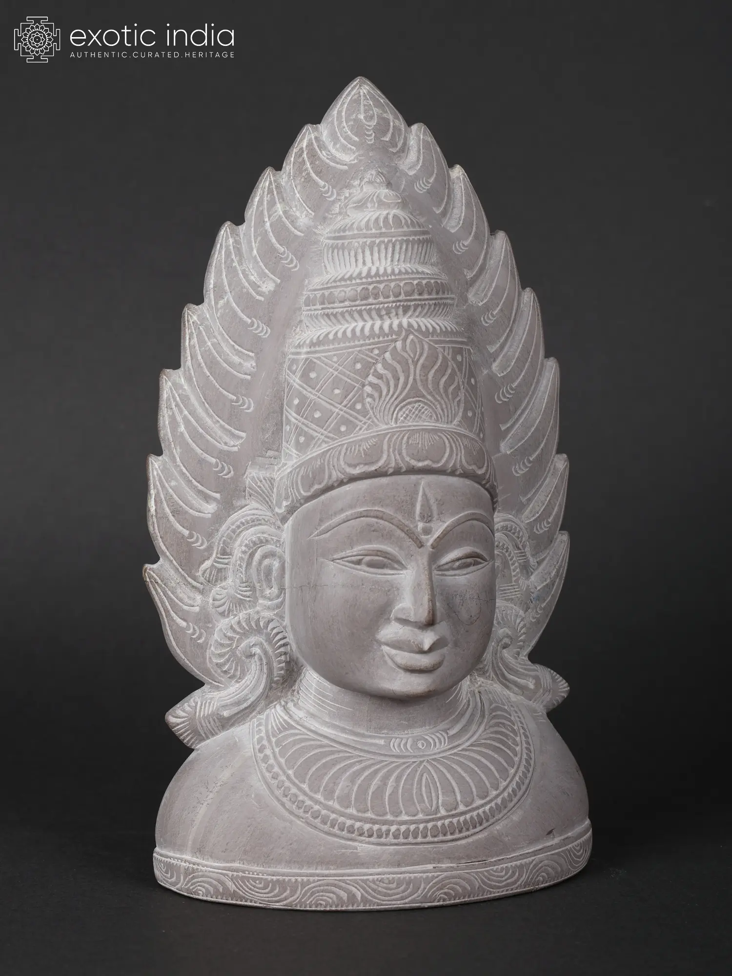 This exquisite stone sculpture captures the serene yet formidable visage of Goddess Durga, the divine mother and protector in Hindu tradition. Carved with meticulous detail, the statue emanates an aura of strength and compassion, inviting contemplation and devotion. The stone itself, originating from Mahabalipuram, a UNESCO World Heritage site renowned for its ancient rock-cut temples and sculptural artistry, carries with it centuries of artistic heritage. Mahabalipuram's artisans have long been masters of transforming raw stone into objects of profound beauty and spiritual significance, and this piece is a testament to that enduring legacy.