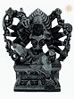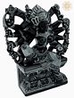 Here Goddess Durga is shown in sitting posture. She has slain the demon Mahishasur, and his head is lying under her feet. Her ten arms symbolize that her protecting influence extends in all directions of the world: namely the eight corners, the sky, and the Earth. The goddess holder Goddess Durga is shown in a sitting posture. She has slain the demon Mahishasur, and his head is lying under her feet. Her ten arms symbolize that her protecting influence extends in all directions of the world: namely the eight corners, the sky, and the Earth. The goddess holds a snake, a bow, a sword, a chakra (discus), a Trishul (trident), a conch, the severed head of the asura, and the divine flame. According to mythological beliefs, this idol should be placed in the south direction. It is important that while worshipping you should face either the south or the east direction. This lightweight Goddess Durga statue sits on a sturdy base. The entire masterpiece is carved out artistically from the famous black stones found in Mahabalipuram in the southern part of India. There are several mantras for Goddess Durga, but the most simple and easy mantra to remember is Om Sri Durgaya Namah. It is believed that by chanting this mantra regularly the Divine Mother will remove the physical, mental, and worldly problems in life and shower us with her unlimited blessings.s a snake, a bow, a sword, a chakra (discus), a Trishul (trident), a conch, the severed head of the asura, and the divine flame. According to mythological beliefs, this idol should be placed in the south direction. It is important that while worshipping you should face either the south or the east direction. This lightweight Goddess Durga statue sits on a sturdy base. The entire masterpiece is carved out artistically from the famous black stones found in Mahabalipuram in the southern part of India. There are several mantras for Goddess Durga, but the most simple and easy mantra to remember is Om Sri Durgaya Namah. It is believed that by chanting this mantra regularly the Divine Mother will remove the physical, mental, and worldly problems in life and shower us with her unlimited blessings.