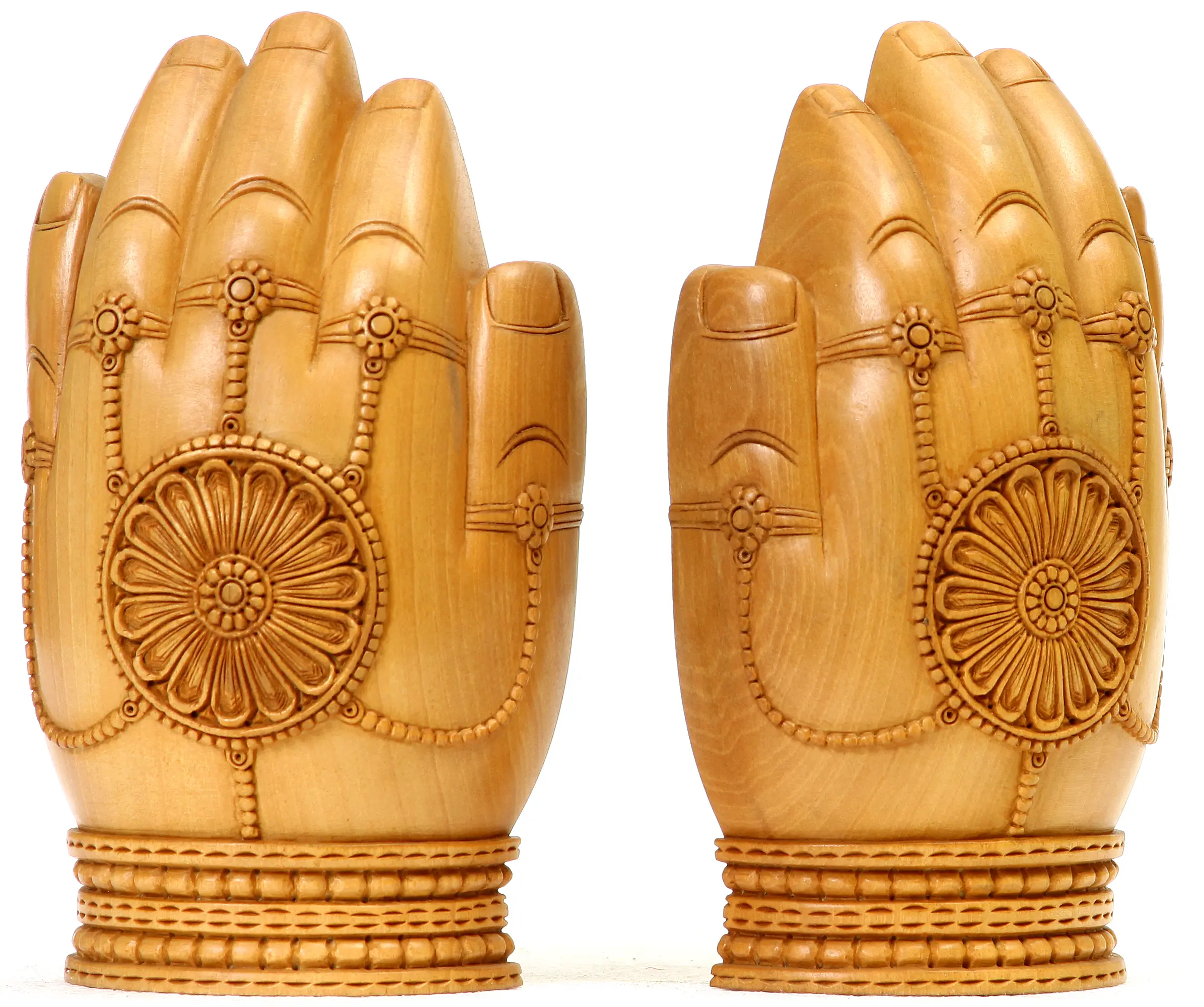 Welcome the divine into your home with this exquisite wood carving, a testament to the skill of Jaipur artisans. This dual sculpture beautifully captures the benevolent presence of Goddess Lakshmi and Lord Ganesha, two of the most revered deities in Hinduism, intricately carved from fragrant Kadamba wood. The warm, natural tones of the wood lend an organic and spiritual aura to the piece, making it a captivating focal point for any sacred space or cherished corner of your home. This piece embodies the essence of auspicious beginnings and material prosperity. Goddess Lakshmi, the divine consort of Lord Vishnu, is the embodiment of wealth, fortune, love, and beauty. In Hindu mythology, she is often depicted seated on a lotus, signifying purity and spiritual awakening, and bestowing abundance upon her devotees. Her gentle gaze and graceful posture in this carving radiate serenity and grace. She is seen holding a lotus flower, a symbol of her divine essence and her ability to bring forth beauty and prosperity from the mundane. Lord Ganesha, the beloved elephant-headed deity, is the remover of obstacles and the god of wisdom and new beginnings. His presence is invoked before any significant undertaking, ensuring success and good fortune. In this sculpture, he is depicted in his characteristic form, exuding an aura of calm power. His presence signifies the clearing of all impediments, allowing for smooth progress in endeavors. He is often associated with arts, sciences, and intellect. The intricate details of his adornments and the gentle curve of his trunk holding a modak (a sweet delicacy) further emphasize his divine nurturing and affectionate nature.