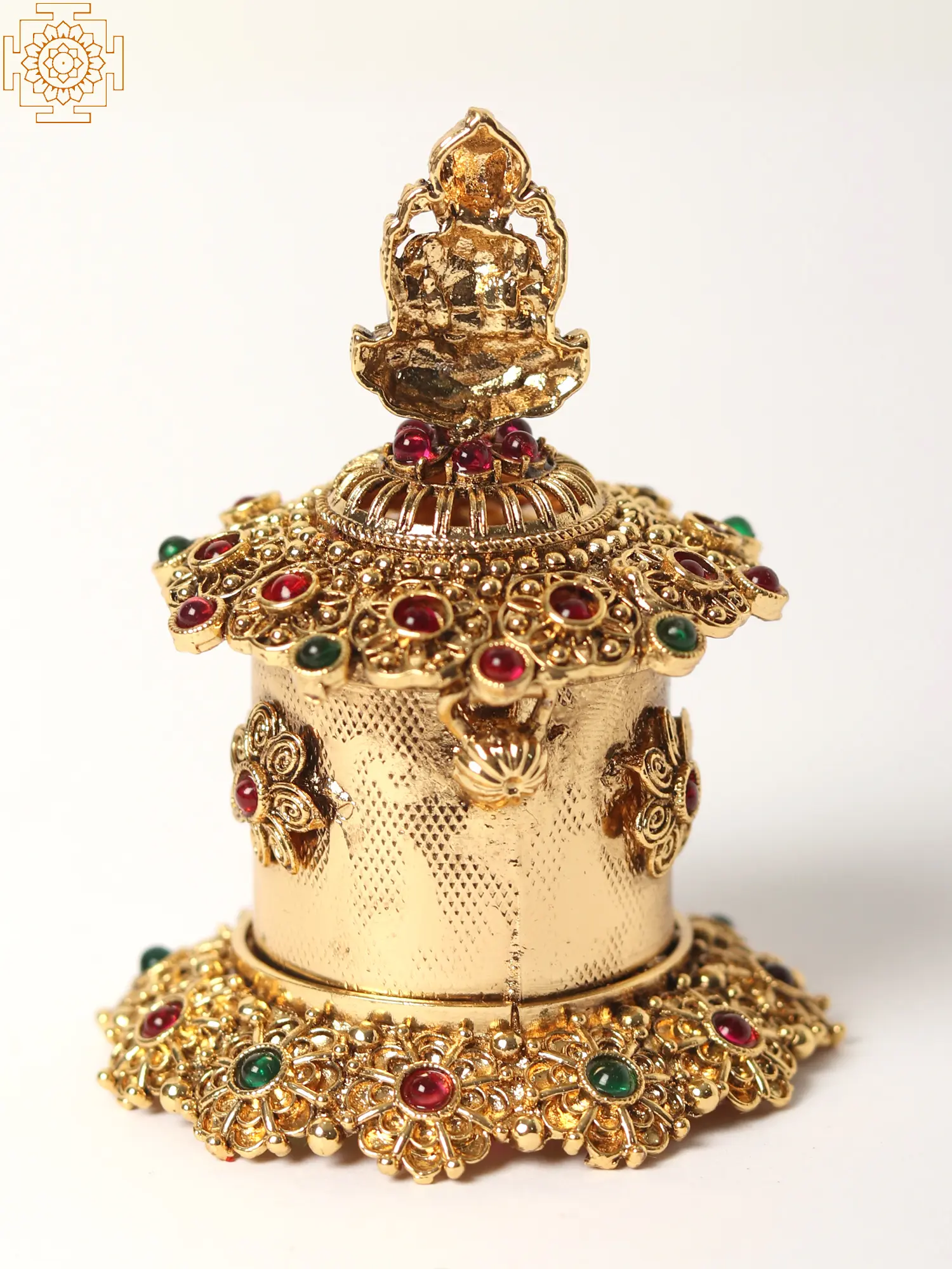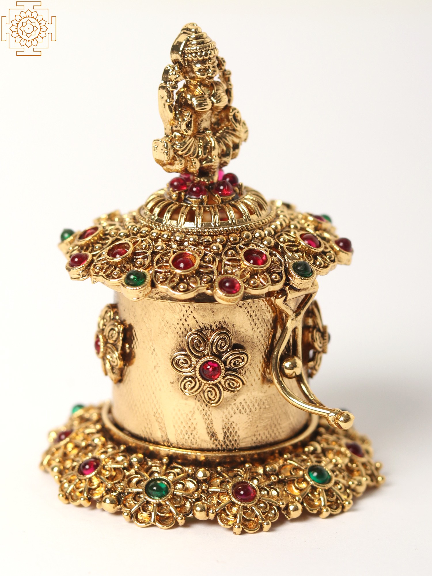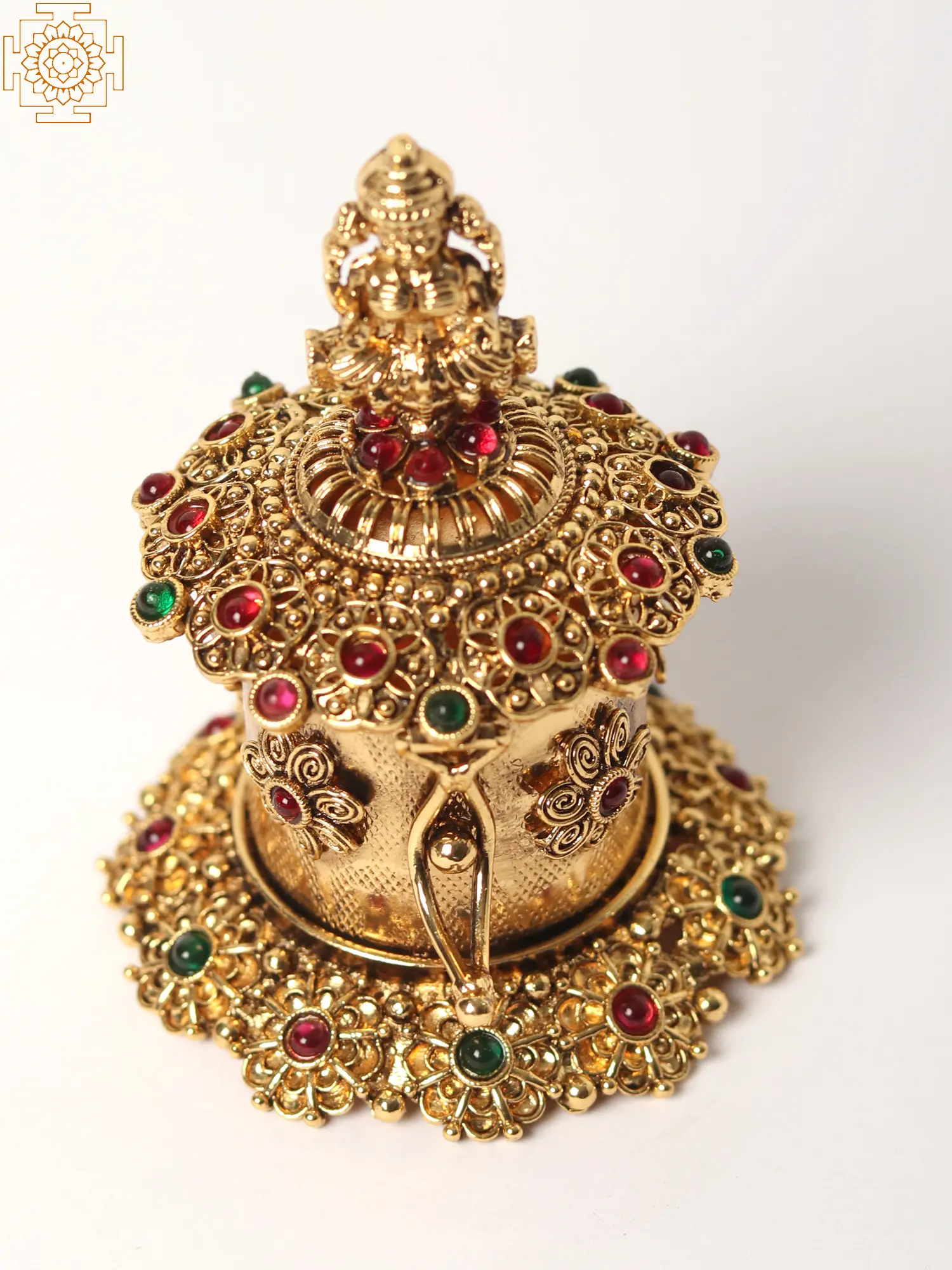 4" Small Brass Storage Box with Ganesha Carving on Top | Brass Ritual Item