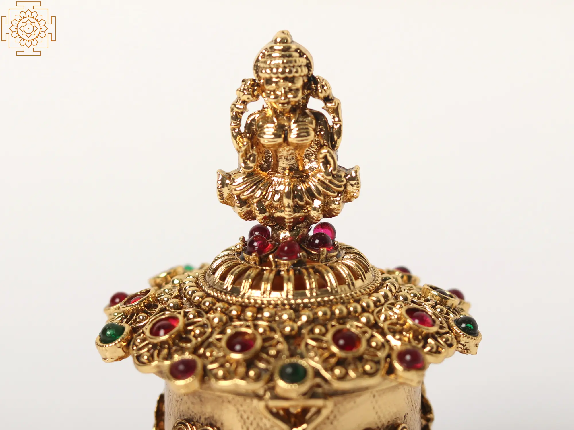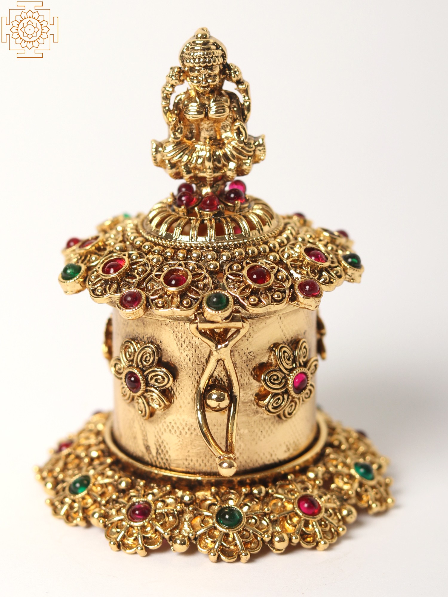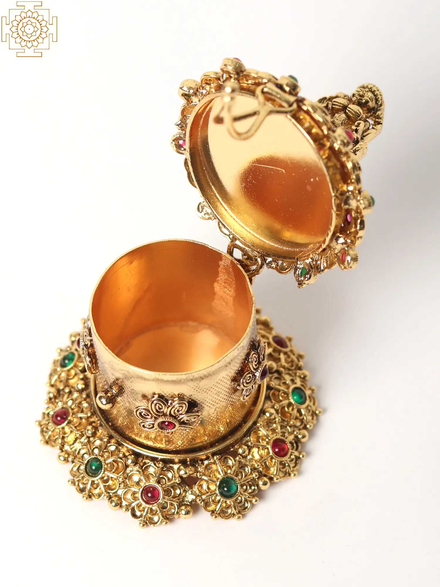 4" Small Brass Storage Box with Ganesha Carving on Top | Brass Ritual Item