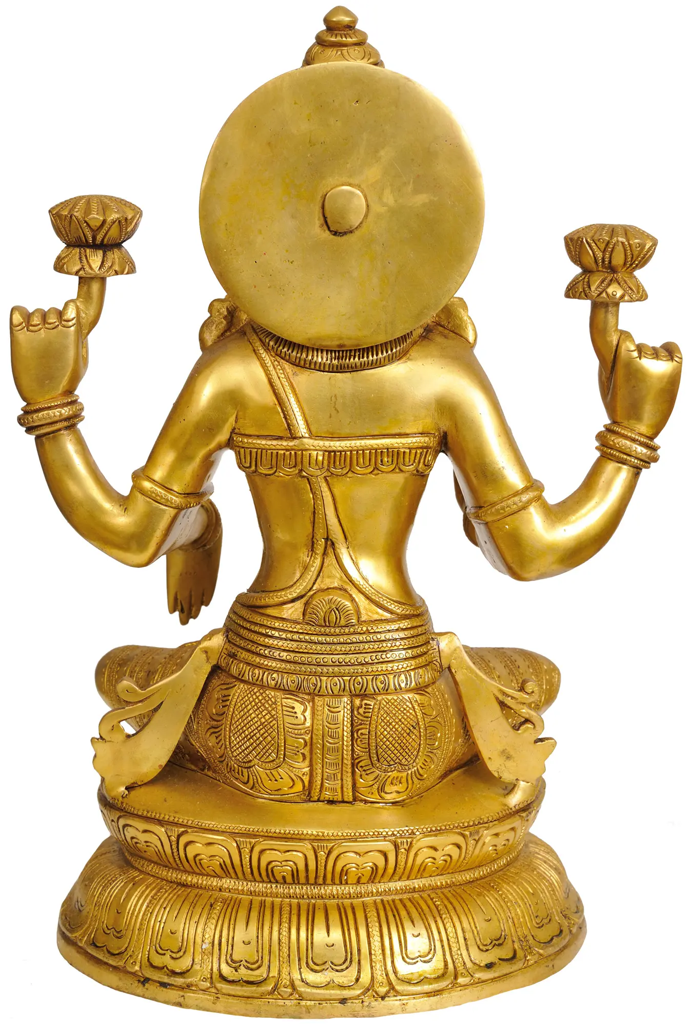 This stunning statue is cast in high-quality brass, a material renowned for its durability and its ability to hold intricate details. The lustrous finish of the brass amplifies the divine glow of the Goddess, making it a truly captivating piece. Every element, from the elaborate headdress and intricate jewelry adorning her form to the delicate folds of her garment, has been rendered with exceptional skill. The serene expression on her face, combined with the graceful posture, imbues the statue with a profound sense of peace and divine power. Placed in your puja room, living space, or office, this Goddess Lakshmi statue serves as a constant reminder of the blessings she bestows and a beautiful testament to traditional Indian artistry. It is more than just a decorative item; it is an embodiment of faith, prosperity, and divine grace, ready to grace your sacred space.