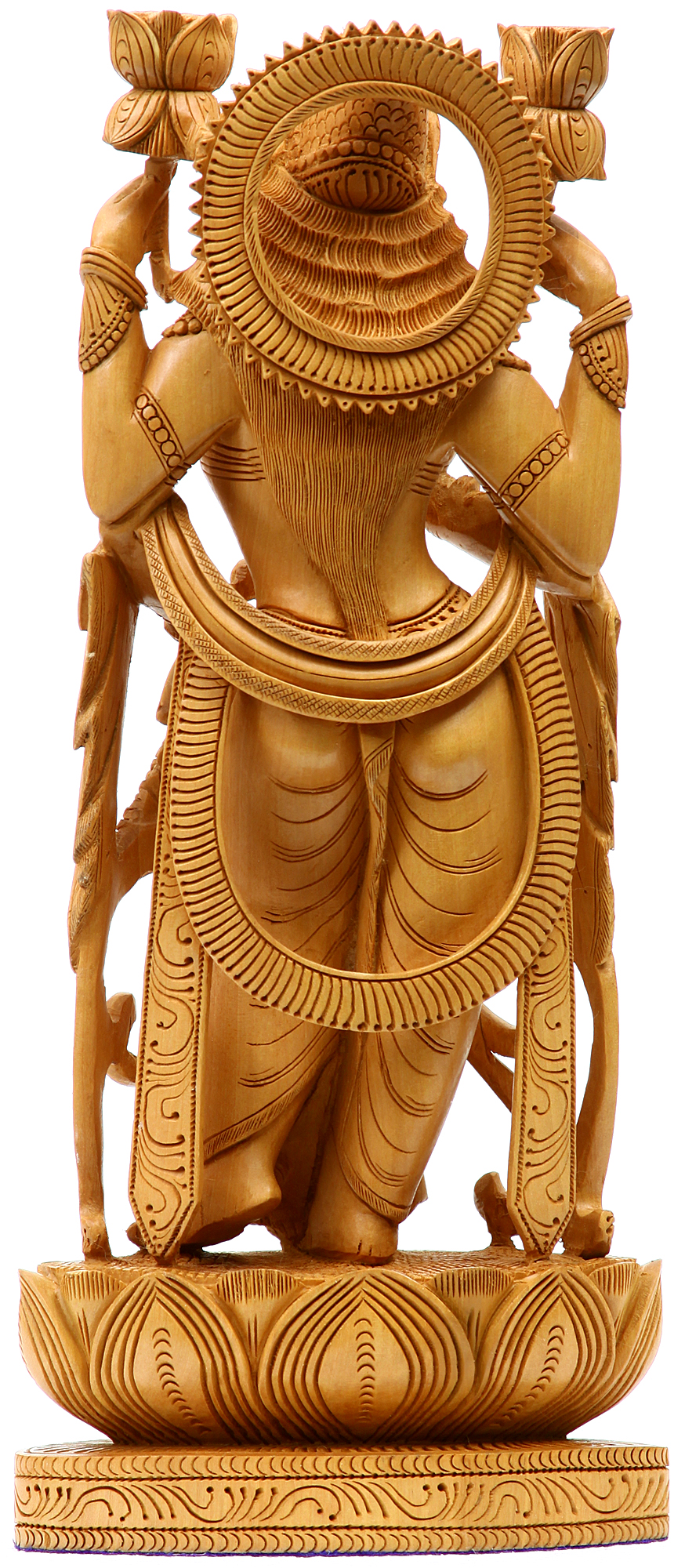 Behold this meticulously carved sculpture, a reverent depiction of a revered deity. Crafted from the light-hued and finely-grained Kadamba wood, sourced directly from the skilled artisans of Jaipur, this piece encapsulates the grace and abundance associated with the divine. Notice the smooth, polished finish, a testament to the sculptor's dedication and a reflection of the pure essence of its subject. Every curve and contour speaks of prosperity, beauty, and auspiciousness.