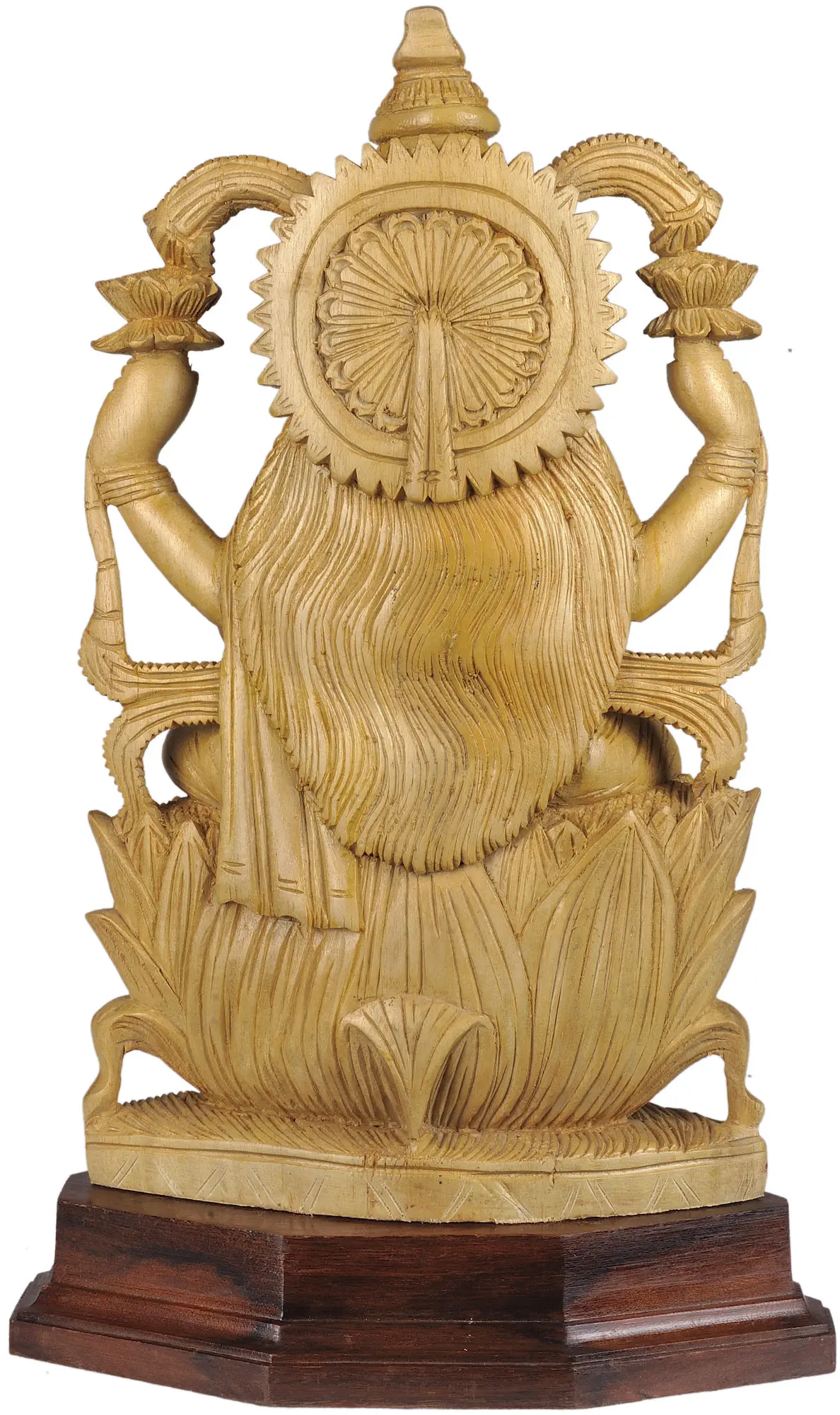 This statue has been carefully carved from the rich grain of White Cedar Wood, sourced from the region of Trivandrum, a place known for its natural bounty and skilled artisans. The use of this type of wood lends a unique, natural warmth and texture to the artwork, inviting the observer to reach out and appreciate the artisan's skilled craftsmanship. Every line, curve, and detail is a testament to the dedication and skill poured into creating this representation.