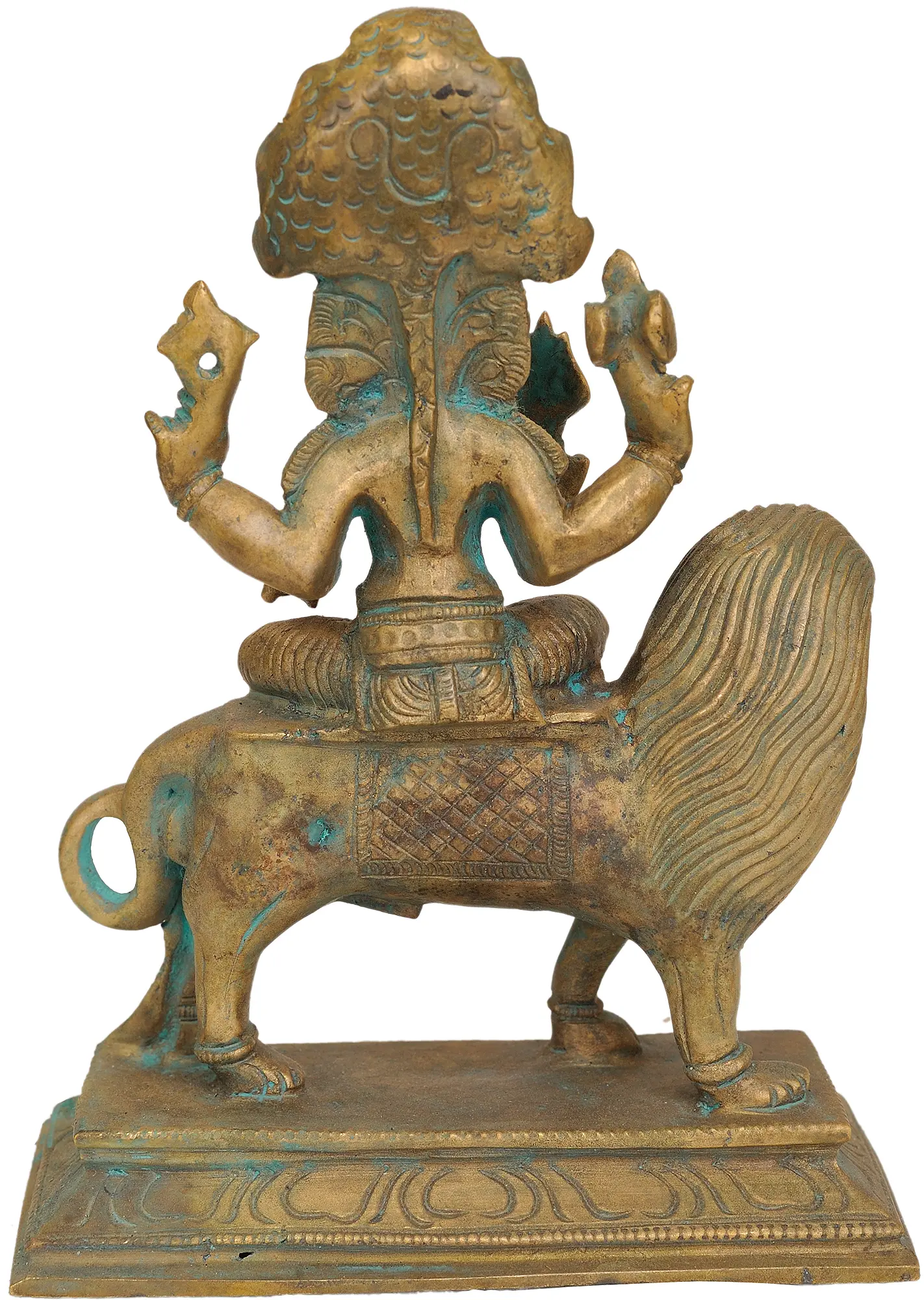 Invite divine protection and fierce grace into your home with this exquisite bronze-cast of Goddess Pratyangira. Seated majestically upon a powerful lion, this deity embodies an unwavering strength and formidable power, revered for her ability to vanquish negativity and protect her devotees. The artistry of Swamimalai, a region renowned for its centuries-old tradition of bronze casting, is evident in every detail, from the intricate ornamentation of the goddess to the powerful musculature of the lion. This statue is not merely an object of art but a conduit to ancient spiritual energies, bringing a sense of security and auspiciousness to any space it occupies.
