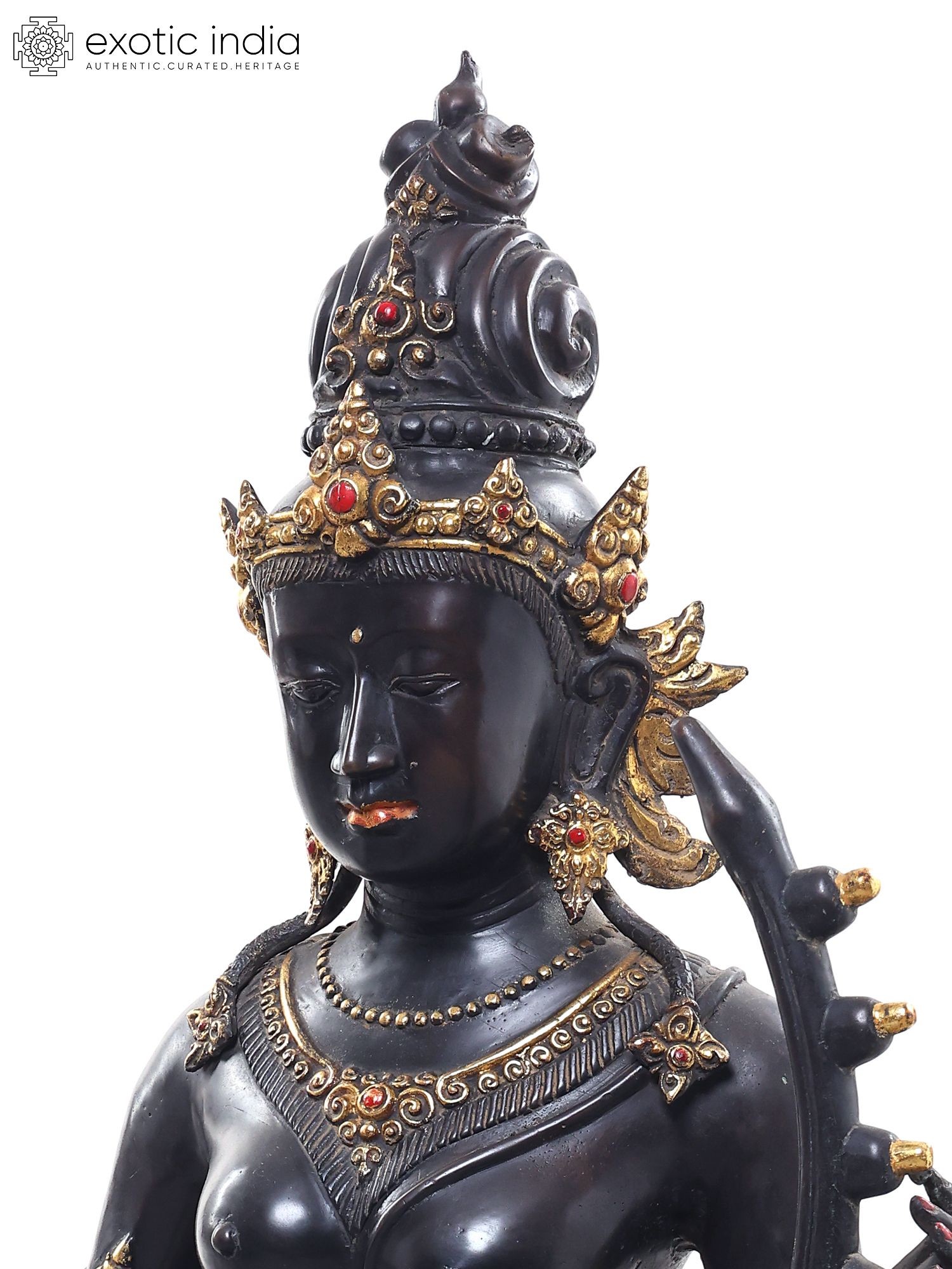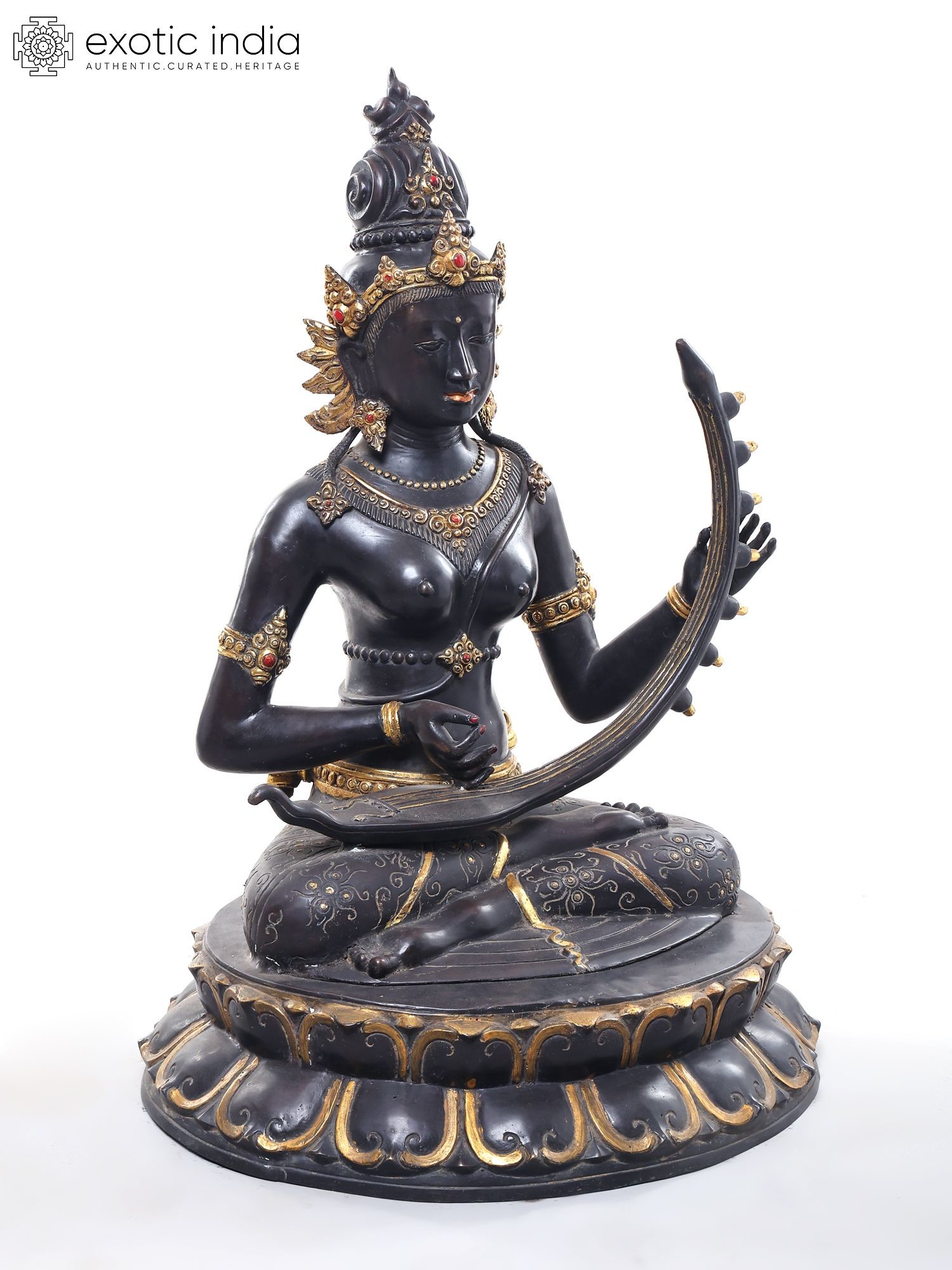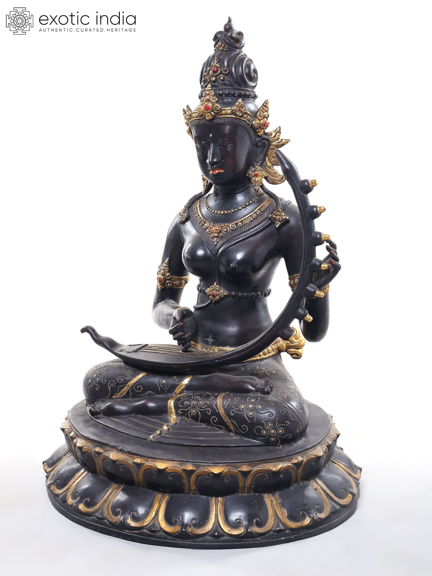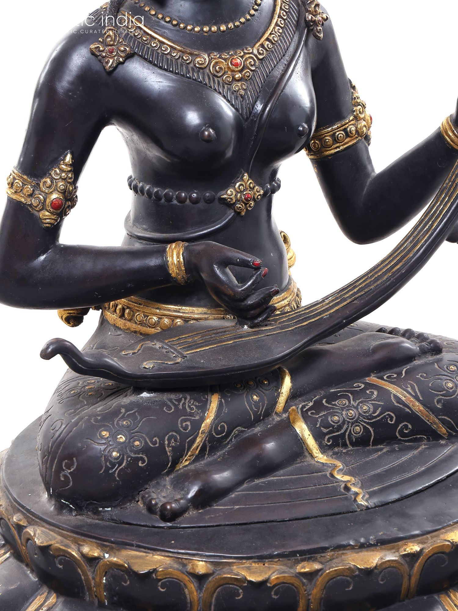 • Depicts Goddess Saraswati, the deity of knowledge, music, and arts, seated gracefully.