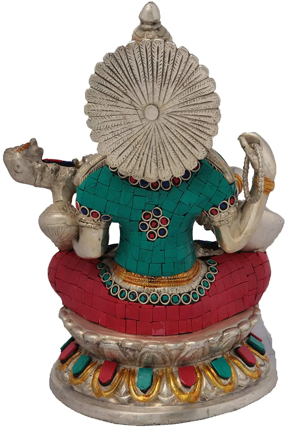 Crafted from high-quality brass, this statue showcases the enduring appeal of Indian artistic traditions. The meticulous inlay work, featuring colorful stones that echo the vibrant hues of nature and emotion, elevates this piece from a mere representation to a work of art. The metallic sheen of the brass lends a timeless elegance, while the delicate detailing of her features, the flowing fabric of her garments, and the ornamental jewelry all speak to the skill of the artisan. This representation of Goddess Saraswati is not just an object of devotion but a testament to the rich cultural heritage and artistic ingenuity passed down through generations, offering a tangible connection to the divine and the pursuit of wisdom.