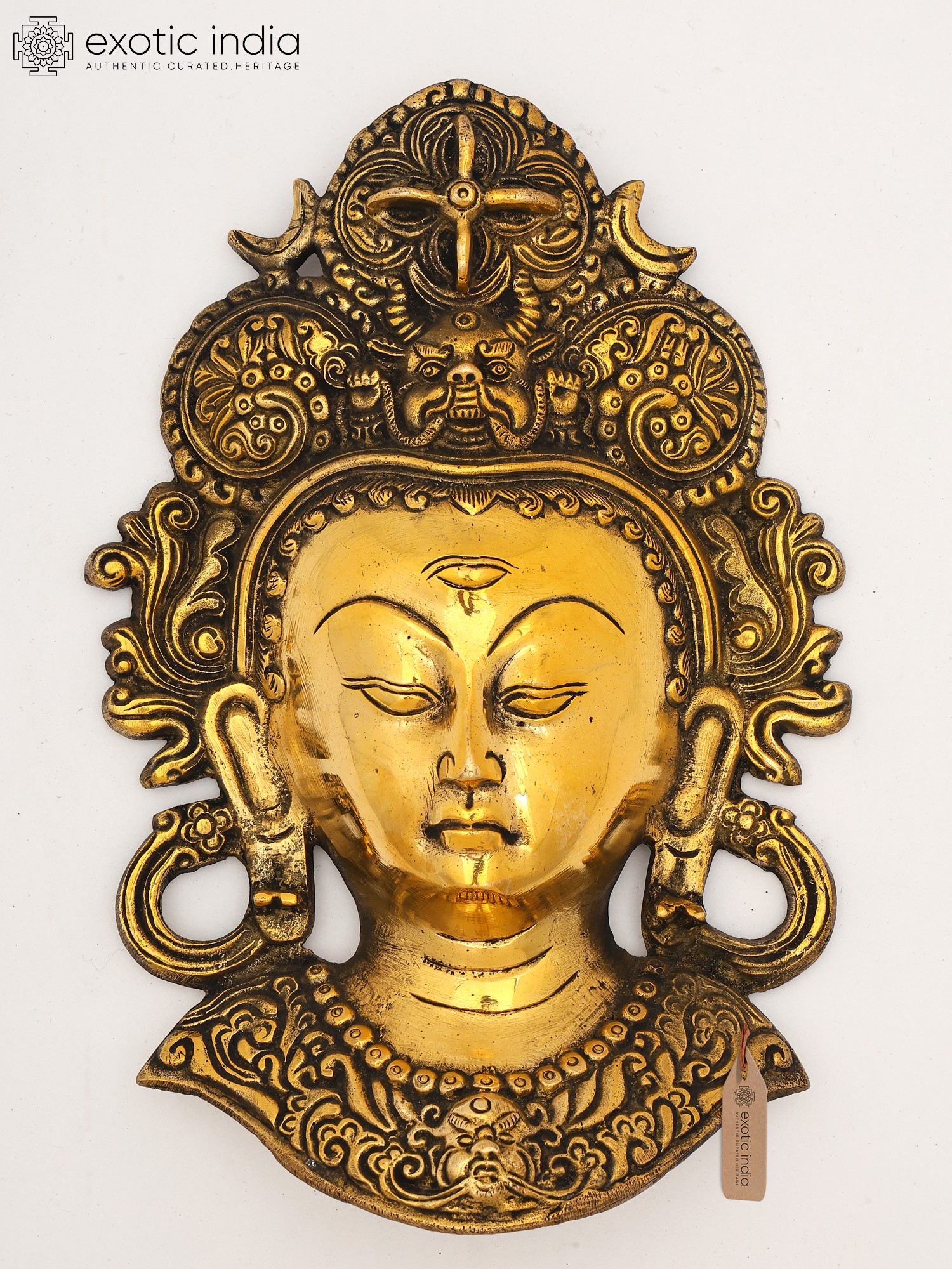 12" Golden Devi Tara Wall-Hanging Mask in Brass | Handmade | Made in India