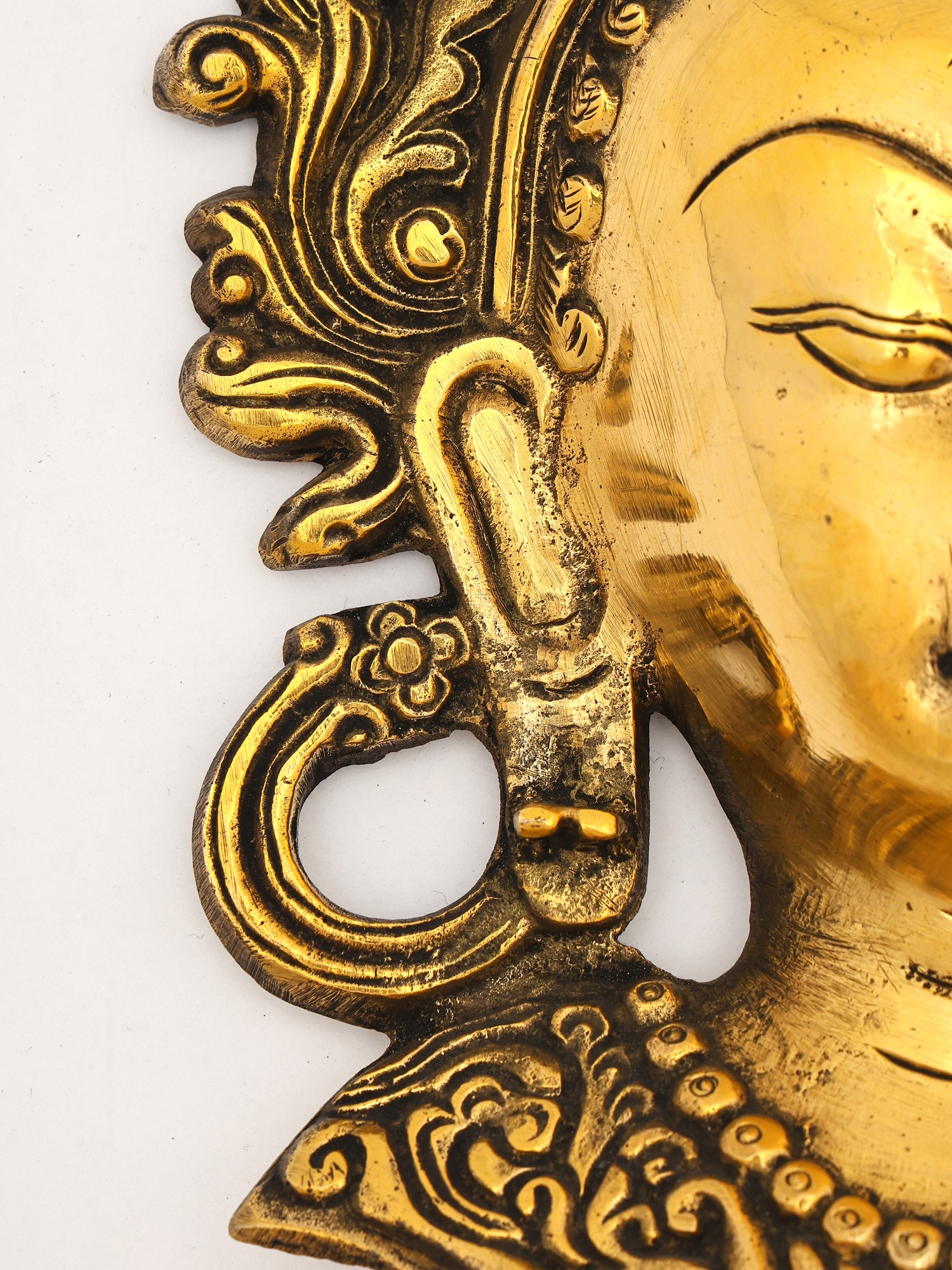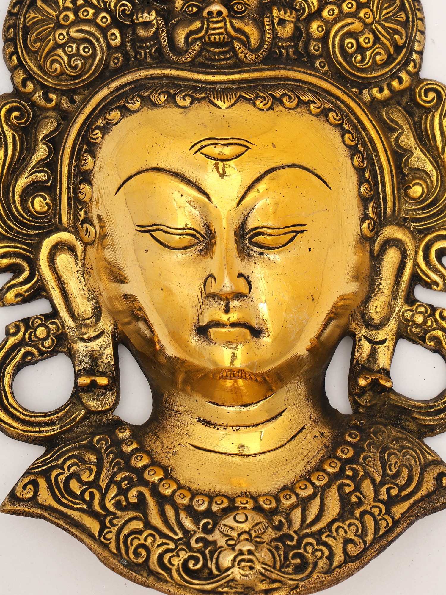 10" Tibetan Buddhist Goddess Tara Wall Hanging Mask In Brass | Handmade | Made In India