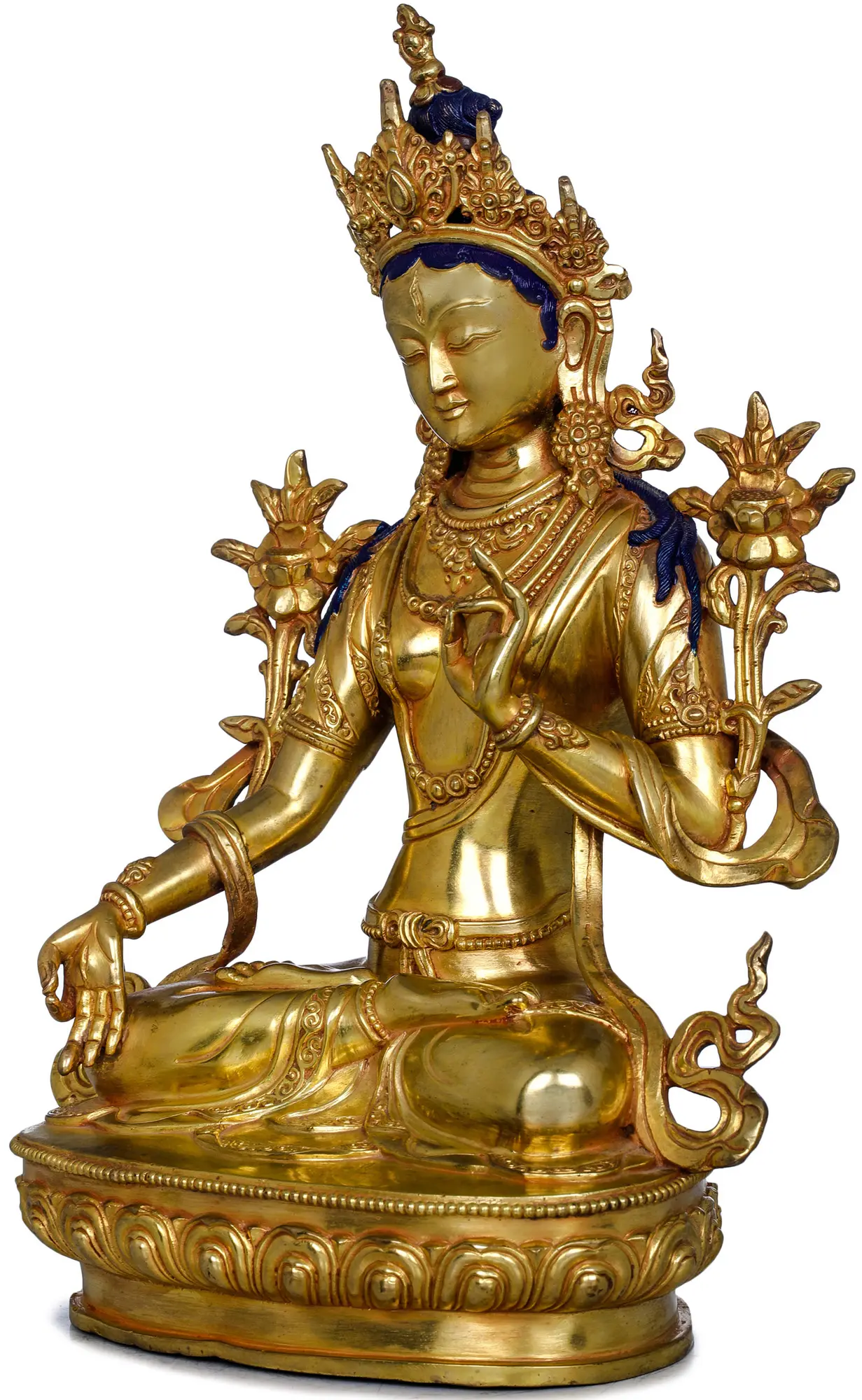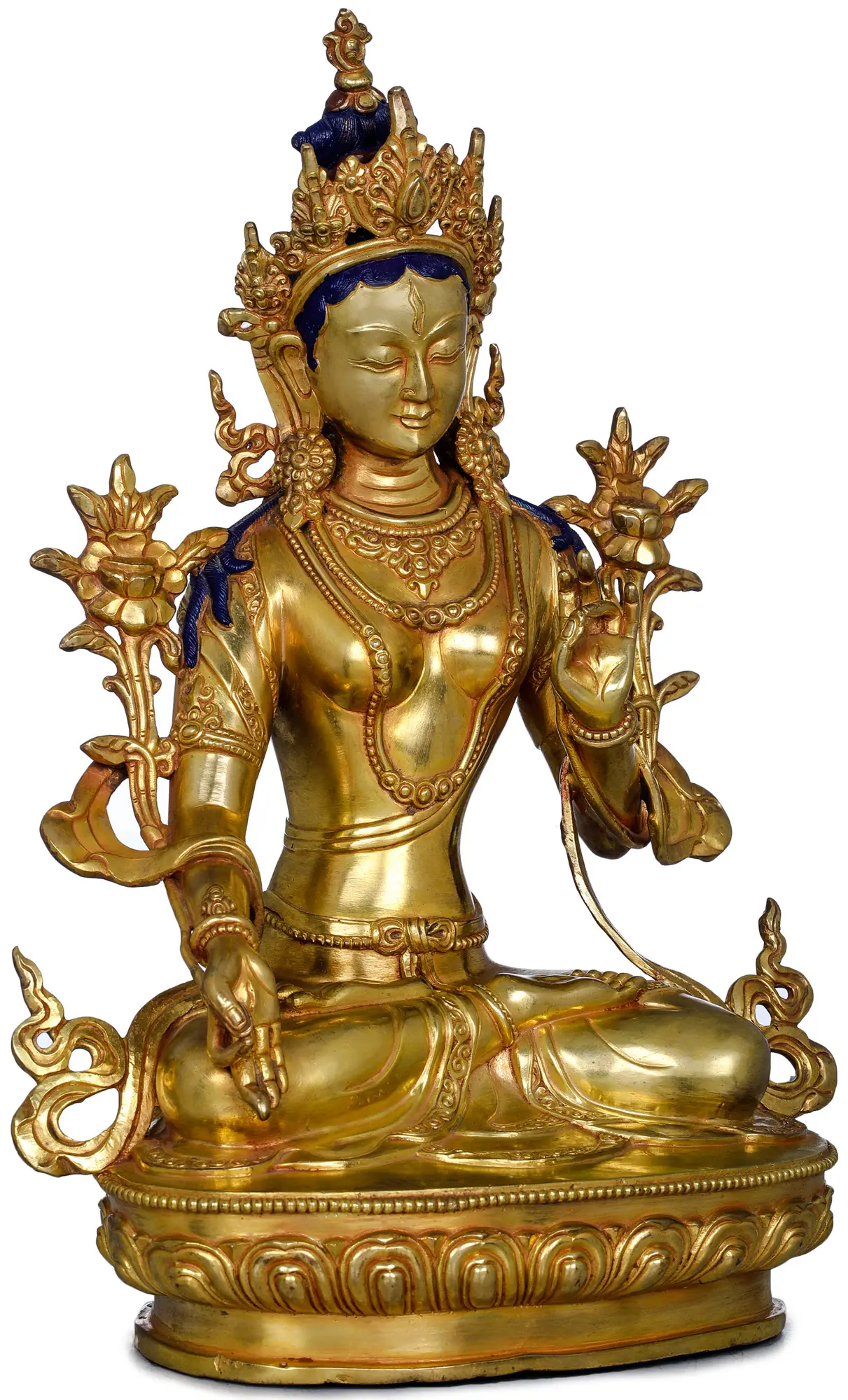 for artists to cast a metallic statue having intricate details. Since Nepalese copper sculptures require extraneous effort for giving a majestic look by adding special embellishments, it takes several weeks to complete one masterpiece. A 24K gold gilded copper sculpture retains its brilliant luster for many years and appears as like before. Nepalese sculptures continue to remain one of the finest specimens of the art of the East that have a strong aesthetic appeal that other sculptures cannot match.
