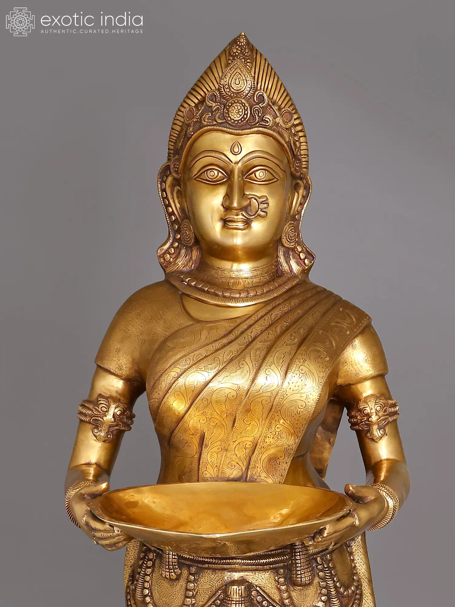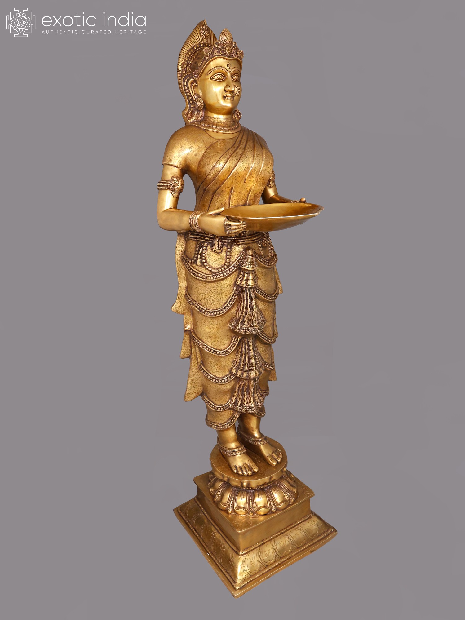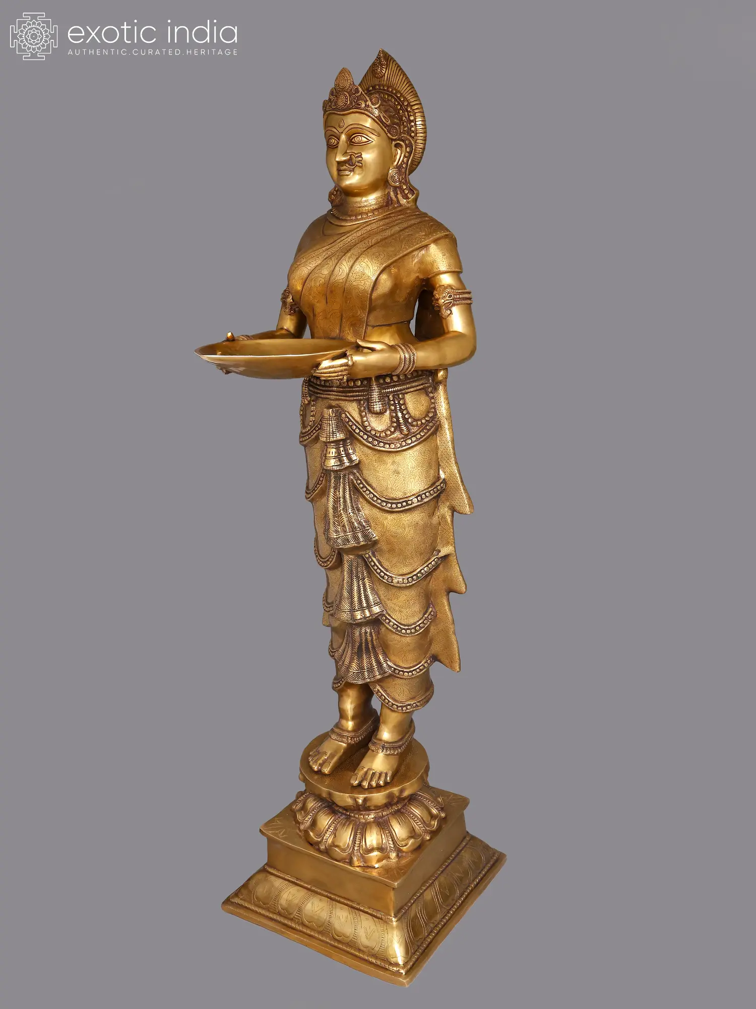51" Large Size Deep Lakshmi - An Icon of Auspiciousness | Brass with Inlay Work