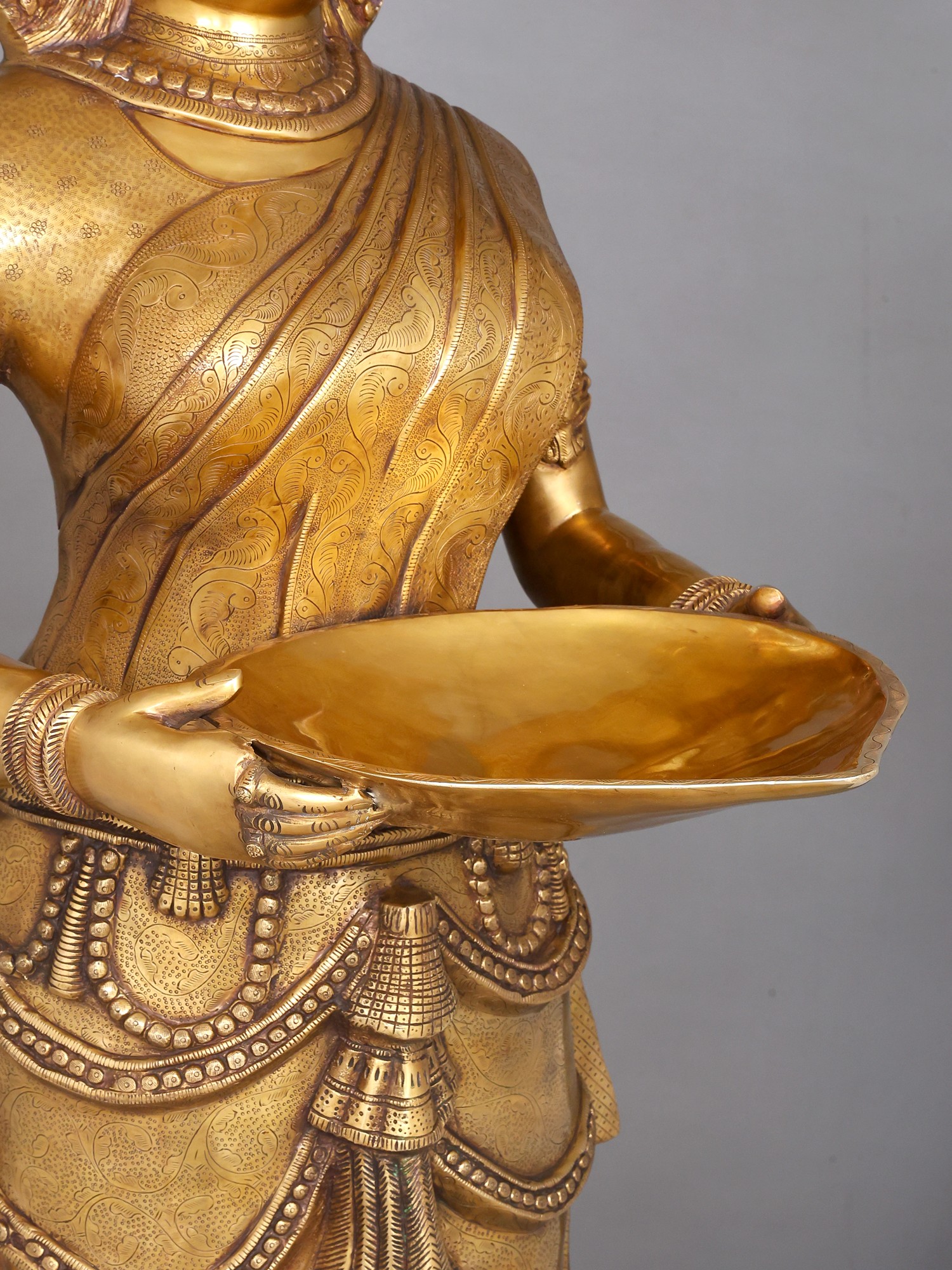 33" Large Size Deep Lakshmi In Brass | Handmade | Made In India