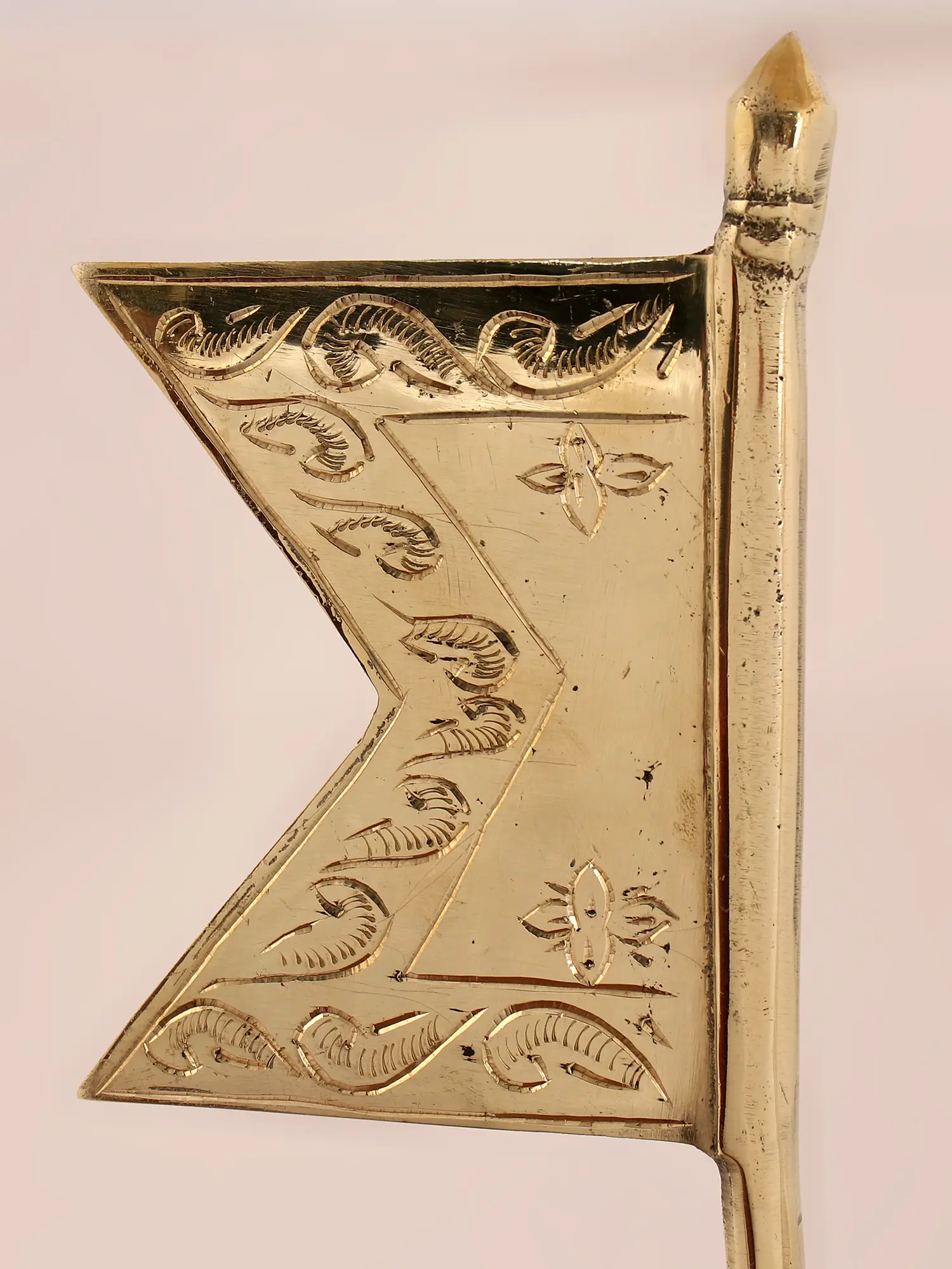 This Shodasa Upchara puja flag is used during the sixteen-step Shodasha Upchara. It is made of pure bronze and is placed near the statue of the deities. It is also considered the mark of victory of the good over the evil.
