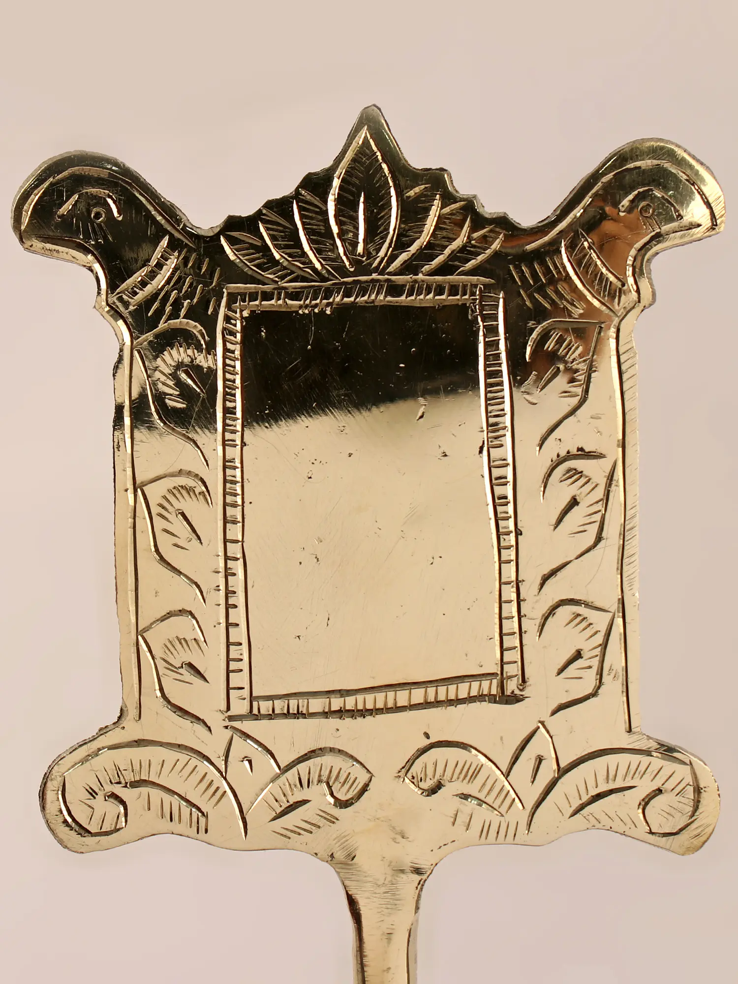The bronze Shodasha Upchara Mirror, known as Darpana, is used during the alamkara rite of the sixteen-step Shodasha Upchar ritual. The deities are fully ornamented, and a mirror is placed before them. The mirror, fashioned from pure bronze, is an essential tool of Hindu rituals.