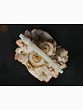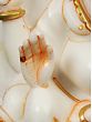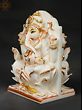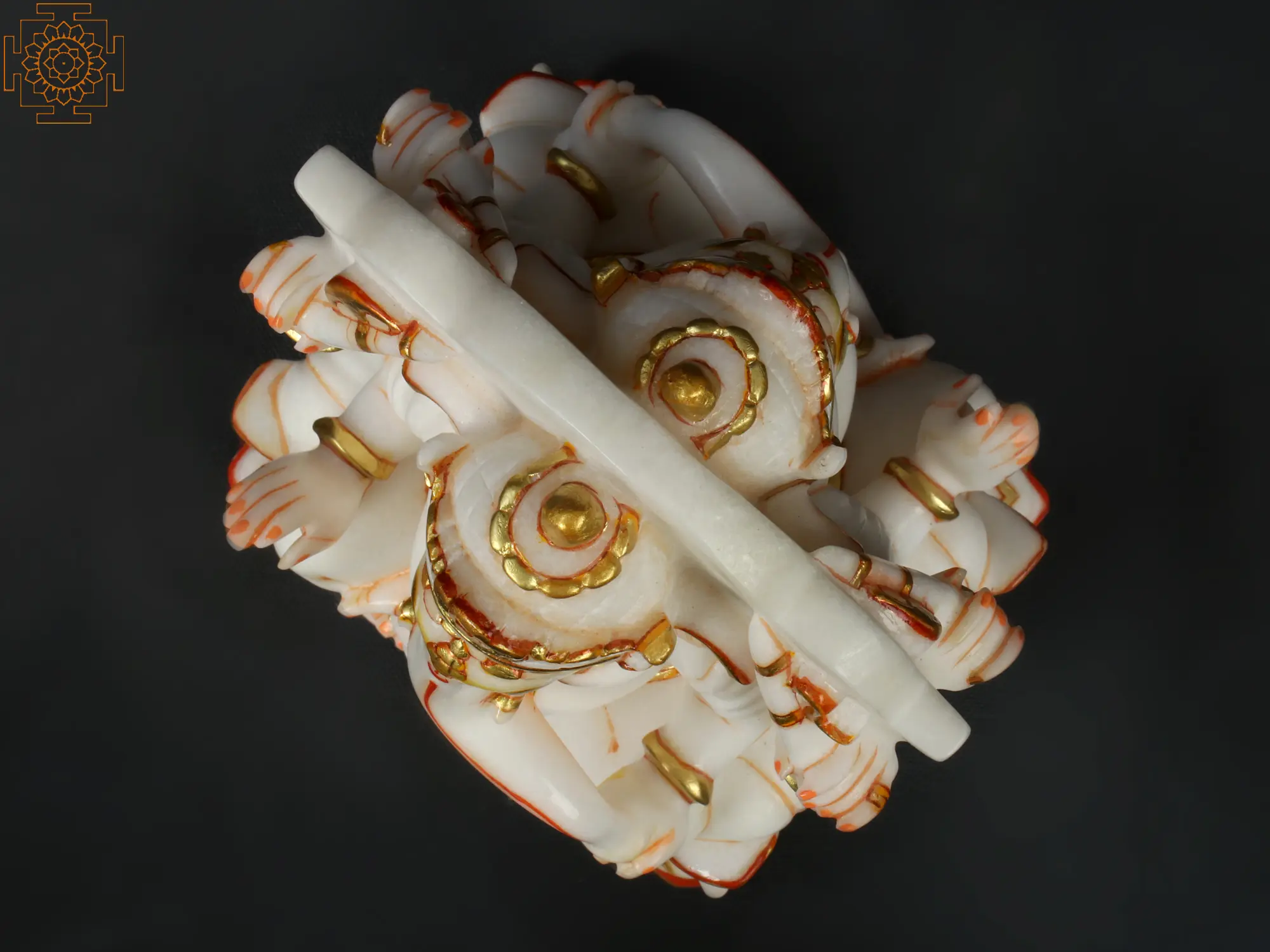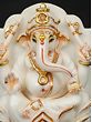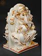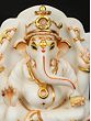 This exquisite white marble statue captures the divine essence of Lord Ganesha, the revered deity of wisdom, intellect, and auspicious beginnings. Carved with meticulous detail, this piece is a testament to masterful craftsmanship, bringing a sense of serenity and divinity into any space. The smooth, cool touch of the marble evokes a sense of purity, while the subtle, yet striking, golden accents highlight the deity's benevolent features and ornate adornments. The iconic trunk, curving gently, and the large ears symbolize Lord Ganesha's ability to listen and understand, while his serene countenance radiates peace and tranquility. ––––––––––––––––––––