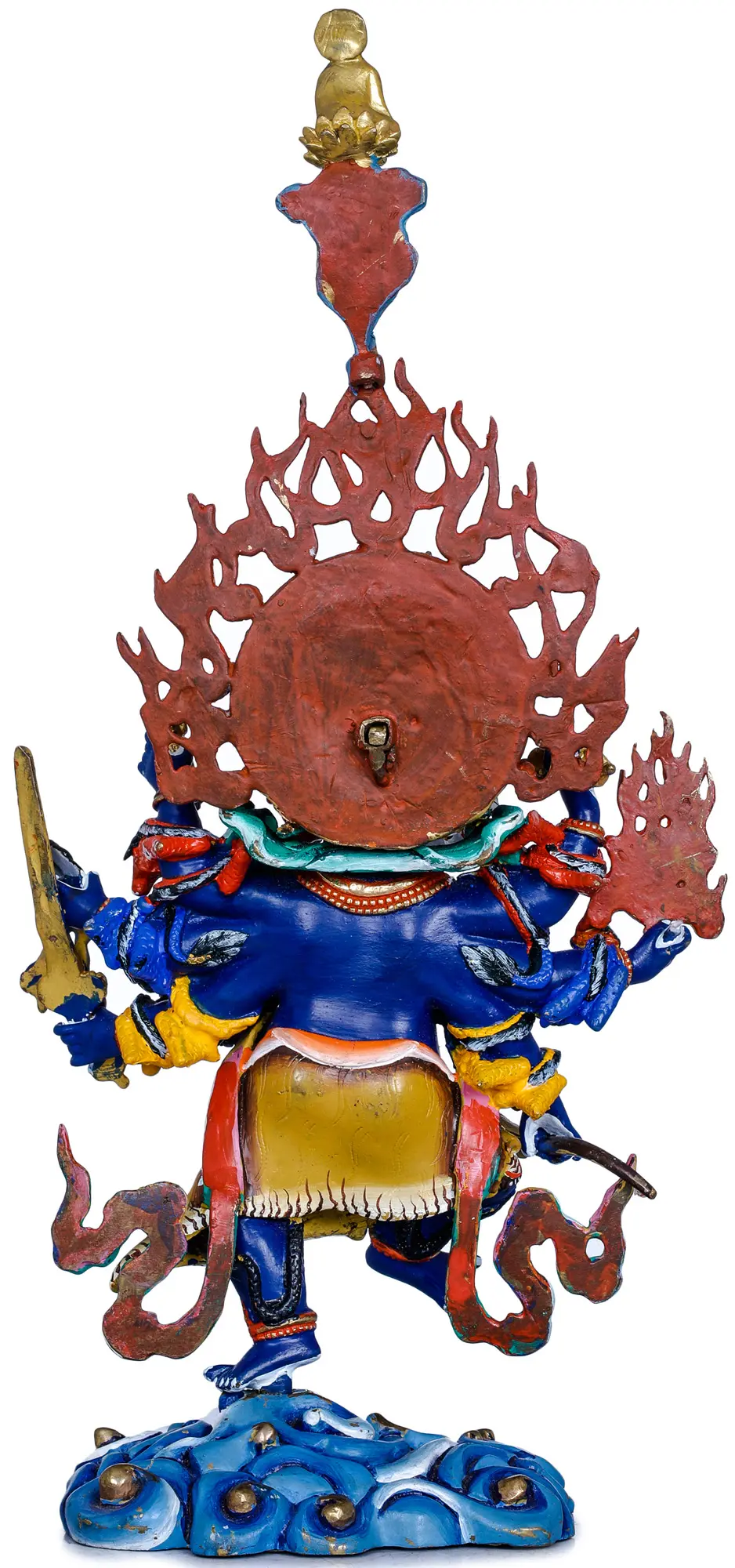 Mahakala is the name given to the numerous wrathful manifestations of Lord Avalokiteshvara. When the gentle, compassionate Bodhisattva spent years on the mountain of Potala in mortal deliverance and looked down only to find that ihalokiya suffering had not diminished, He was shattered. When He gathered Himself again by the grace of Buddha Amitabha, He transitioned into wrath and ferocity, in stark contrast with His former personality. The Mahakala thus emerged as the doctrine protector of all the lokas (realms of existence) of the Buddhist world.