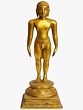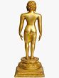 This exquisite brass statue captures the essence of a Tirthankara, a spiritual teacher and a ford-maker in Jainism, guiding souls across the ocean of existence. The figure stands in the iconic Kayotsarga posture, a stance of meditation and detachment, with arms hanging loosely at the sides. The serene expression on the face, with downcast eyes and gently closed lips, conveys profound peace and inner stillness. Every detail, from the intricate curls of the hair to the subtle musculature of the body, is rendered with meticulous care, reflecting the spiritual significance and artistic tradition behind its creation. The Tirthankaras are revered as perfected souls who have attained liberation and shown the path to others. In Jain tradition, there have been twenty-four Tirthankaras in each cosmic cycle. The first Tirthankara was Rishabhanatha, also known as Adinatha, who is often depicted in this standing posture. The very first Tirthankara, Lord Rishabhanatha, is believed to have taught humanity the arts and sciences, including agriculture and writing, thus laying the foundation for civilization. Each Tirthankara is associated with specific symbols, though this particular representation, with its graceful form and tranquil demeanor, is universally recognized as embodying the highest spiritual ideals.