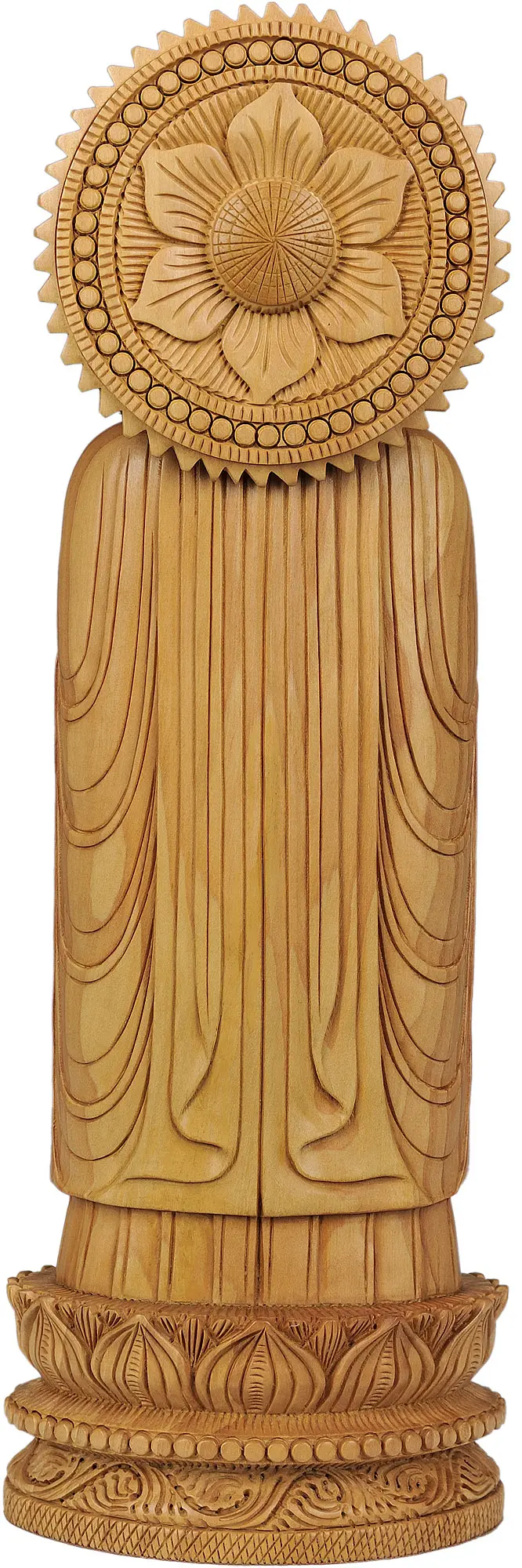 The Buddha stands upon a meticulously carved lotus throne, a powerful symbol of purity, spiritual awakening, and detachment. Just as the lotus flower rises from muddy waters to bloom in pristine beauty, so too can we transcend the impurities of the world and achieve enlightenment. The intricate detailing of the lotus petals showcases the artisan's mastery, transforming a simple base into a powerful emblem of spiritual growth. This lotus throne is not just a foundation for the statue; it's an integral part of the Buddha's symbolic narrative, reminding us of our own potential to rise above adversity and blossom into our fullest potential.