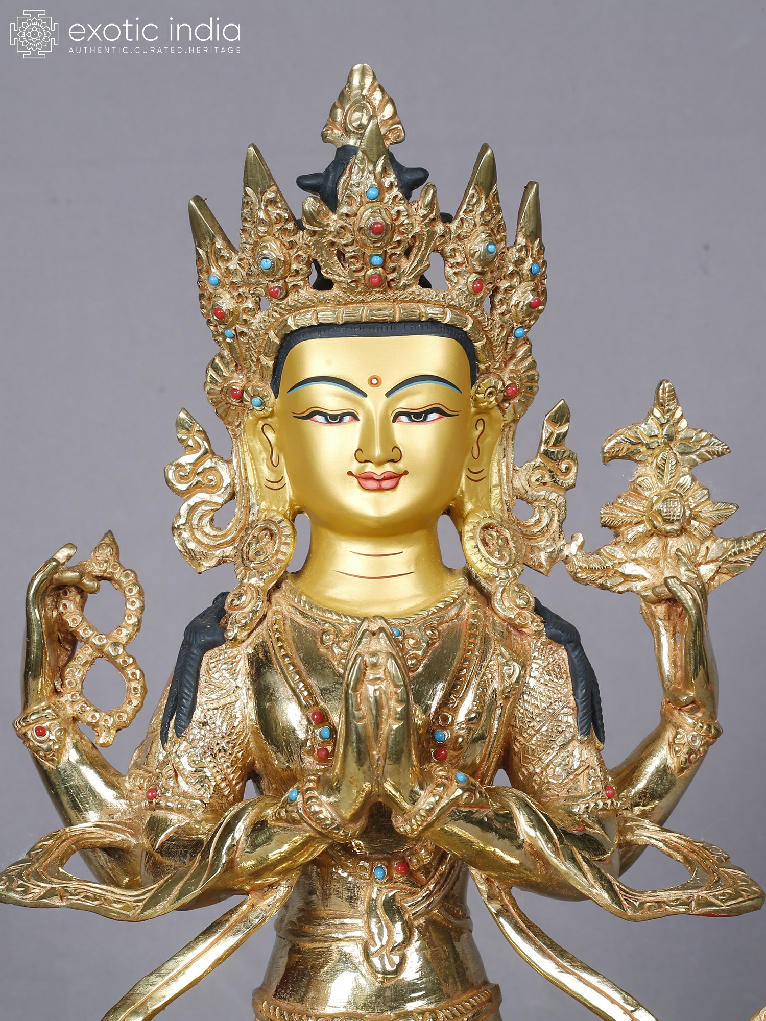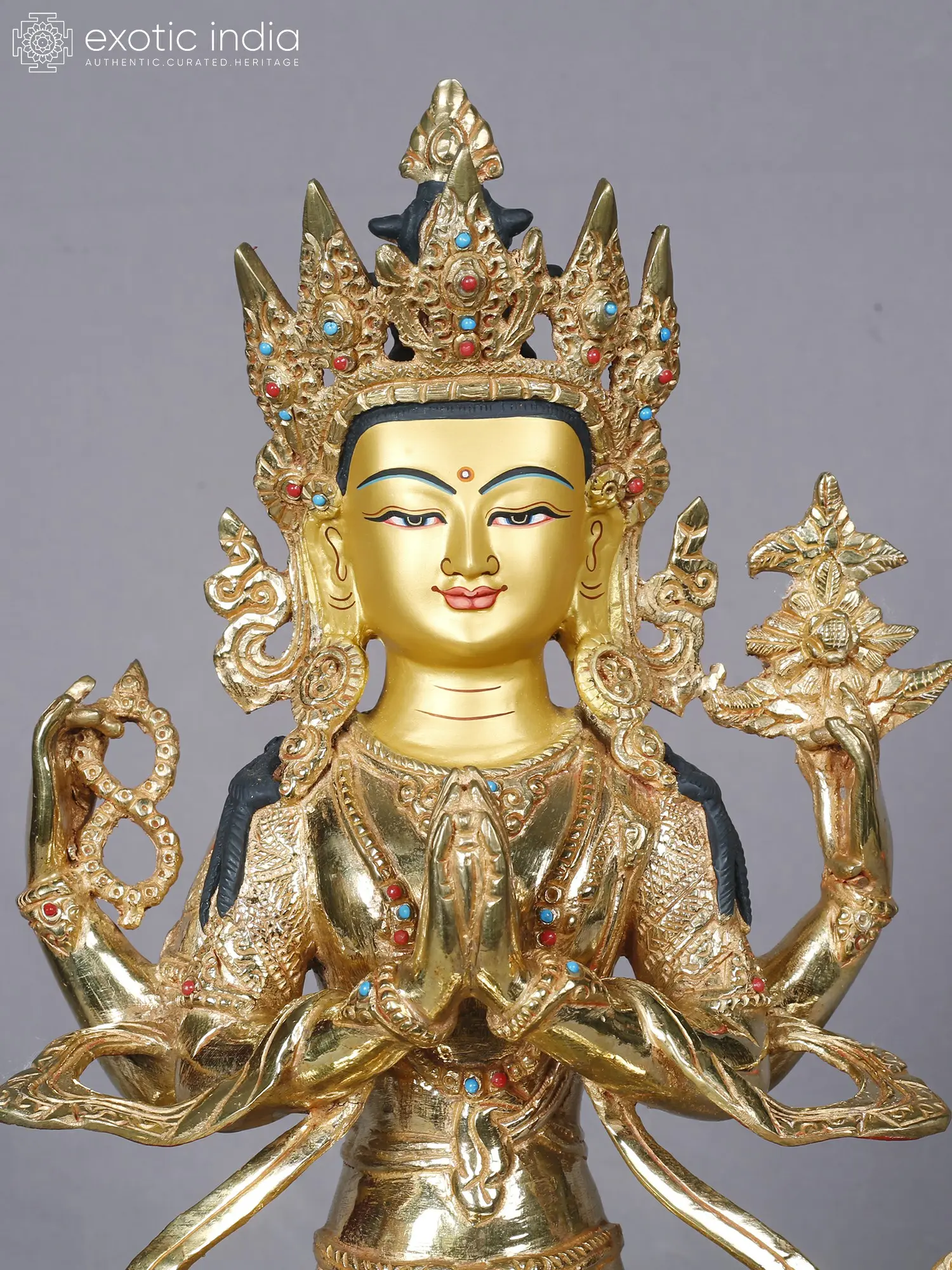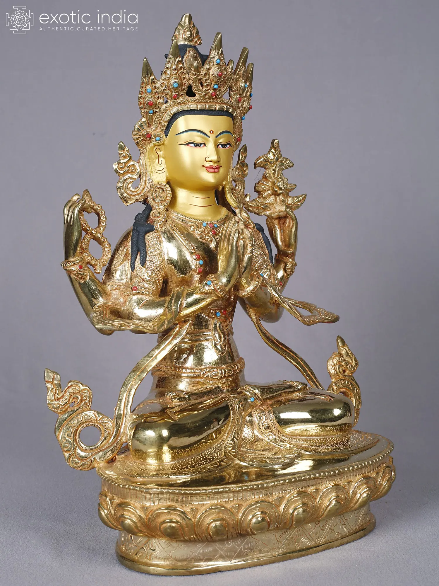 Lord Aparmita Buddha Idol | Copper with Gold Plated | Handmade Exquisite Art